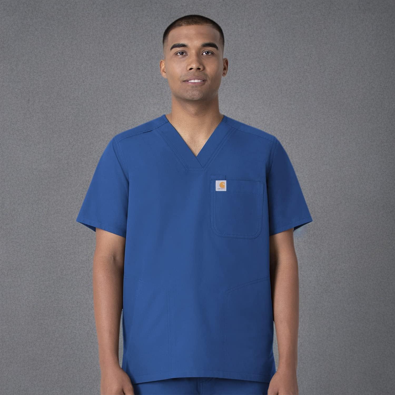 Force technology, along with stain breaking abilities, make our Force Essentials scrub joggers, bottoms, tops, jackets and beanies the perfect choice for fast-paced, long work shifts. This men’s medical work shirt has a modern fit, stretch polyester fabric and a bi-swing at the back yoke allow for ease of movement. A curved shirttail with side vents enhances comfort and breathability. The convenient design of this scrub top for men also makes it great. A corded badge loop on the shoulder, two hidden front pockets with side entry, and a chest pocket offer space for your work ID, snacks, stethoscope and other essentials. At Carhartt, we make hardworking workwear for hardworking people. We stand behind the quality, craftsmanship and performance of every workwear product we make, because we are worn by the hardest-working people of all — healthcare professionals, veterinarians, construction workers, auto mechanics and other everyday heroes.