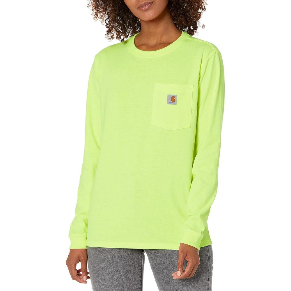Carhartt Women’s 103244 Women’s WK126 Workwear Pocket Long Sleeve T-Shirt(Brite Lime)