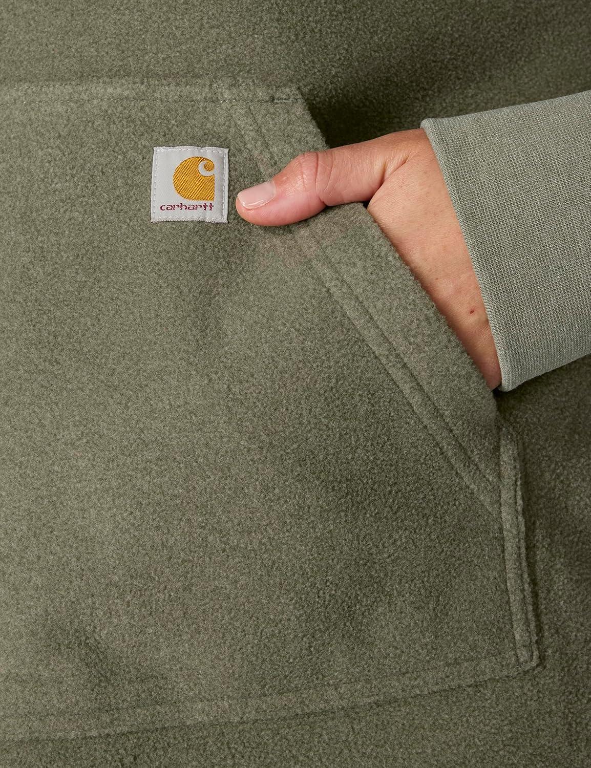 Made for the demands of stop-and-go activity on cool days, this women's Carhartt fleece hoodie balances warmth and breathability for comfort throughout the day. The FastDry® fleece moves sweat away from the body for consistent temperature regulation. An oversized fit is our roomiest cut with plenty of room to move.