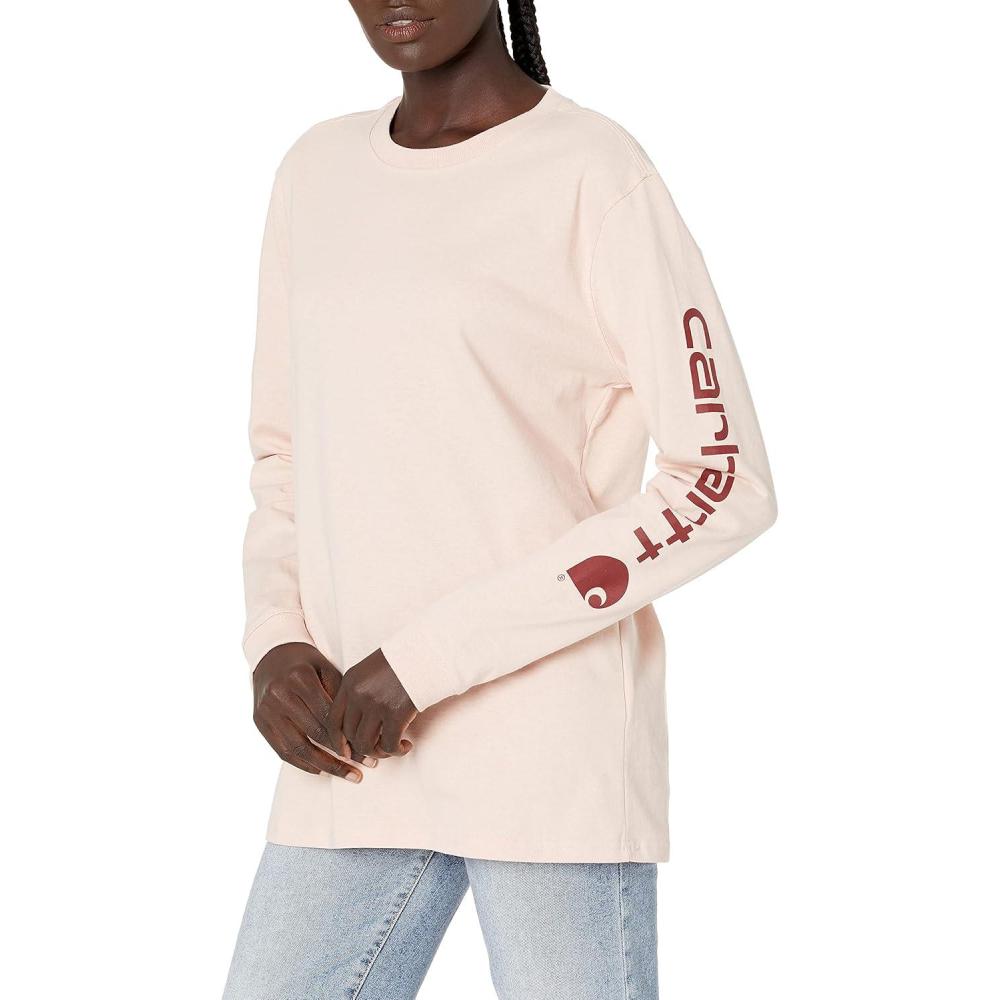 Carhartt Women’s Loose Fit Heavyweight Long-Sleeve Logo Sleeve Graphic T-Shirt(Ash Rose)