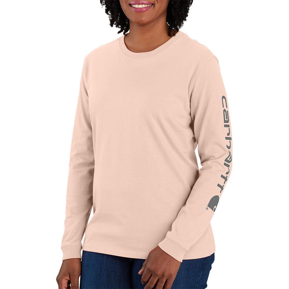 Carhartt Women’s Loose Fit Heavyweight Long-Sleeve Logo Sleeve Graphic T-Shirt(Georgia Peach)