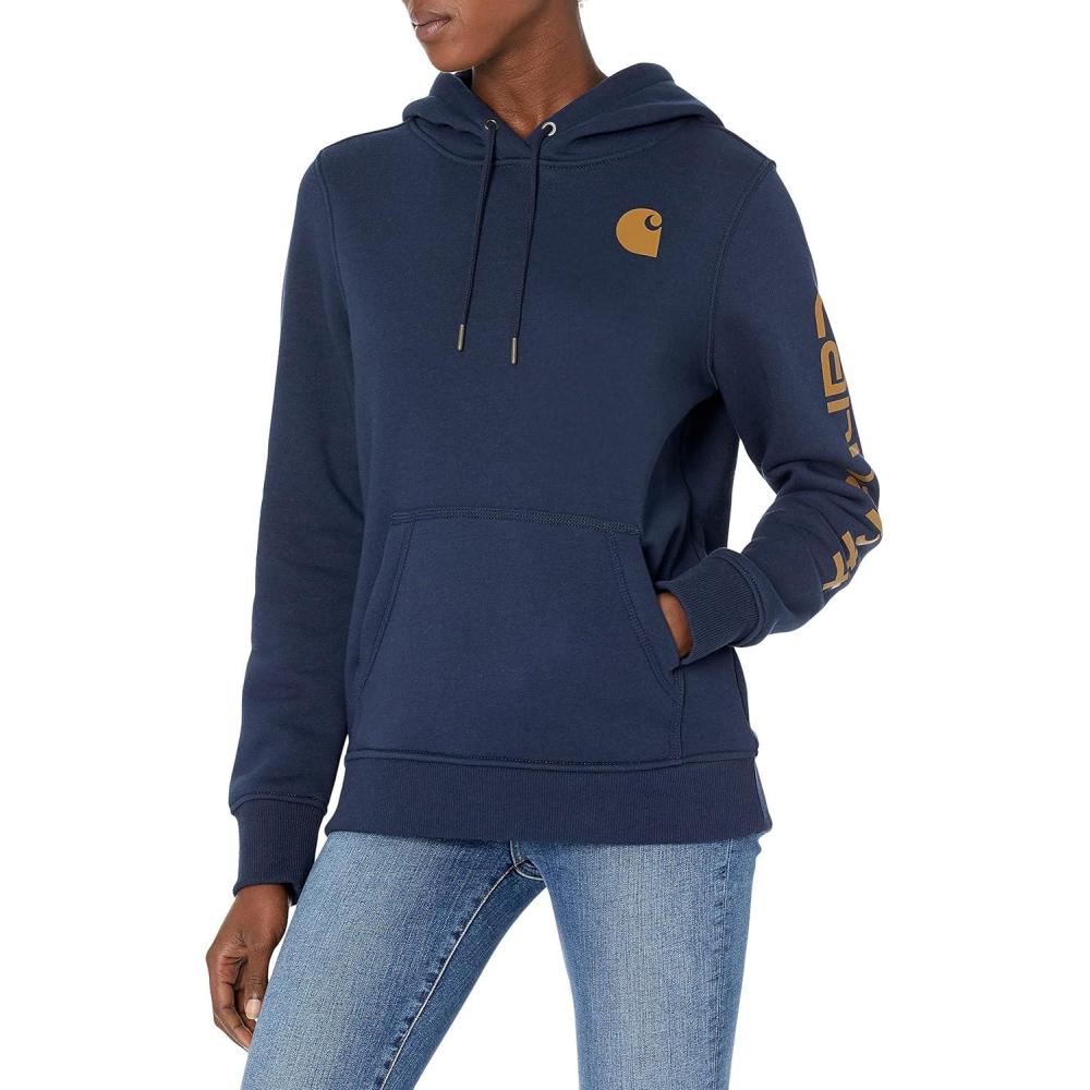 Carhartt Women’s Relaxed Fit Midweight Logo Sleeve Graphic Sweatshirt(Navy Heather)