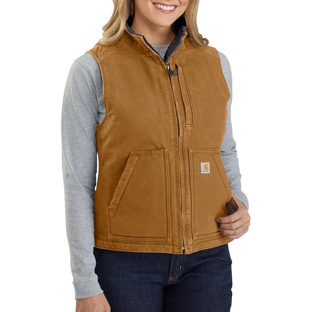 Carhartt Women’s Relaxed Fit Washed Duck Sherpa-Lined Mock-Neck Vest(Carhartt Brown)