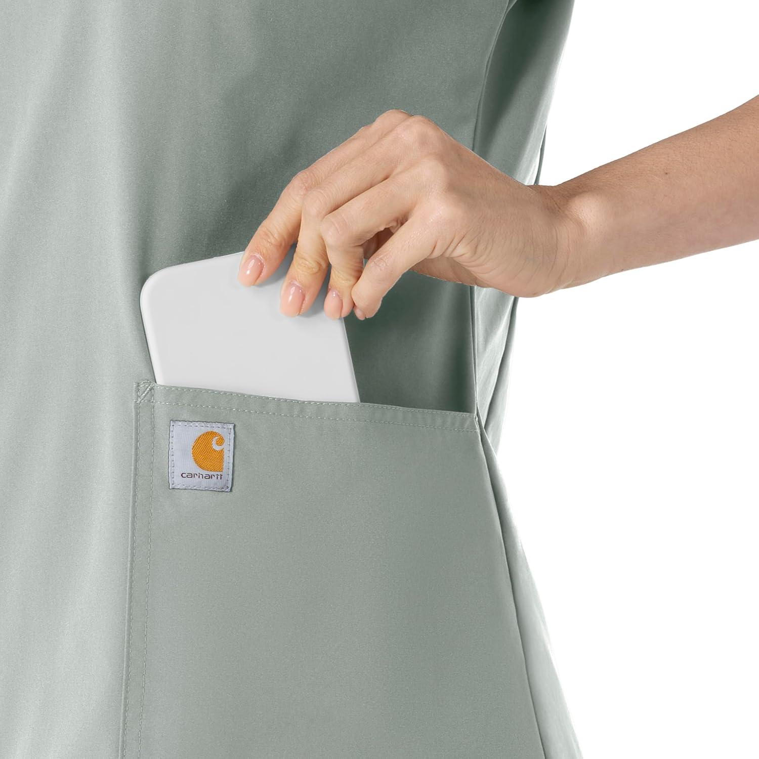 Force technology, along with stain breaking abilities, make our Force Essentials scrub joggers, bottoms, tops, jackets and beanies the perfect choice for fast-paced, long work shifts. This women’s medical work shirt has a modern fit, stretch polyester fabric, curved shirttail hemline, and princess seams at the back that enhance comfort, fit and ease of movement while wearing this medical top. Two large front pockets offer plenty of space for your job essentials. There’s also an internal cell phone pocket at the left and internal scissor pocket at the right of this healthcare shirt. At Carhartt, we make hardworking workwear for hardworking people. We stand behind the quality, craftsmanship and performance of every workwear product we make, because we are worn by the hardest-working people of all — healthcare professionals, veterinarians, construction workers, auto mechanics and other everyday heroes.