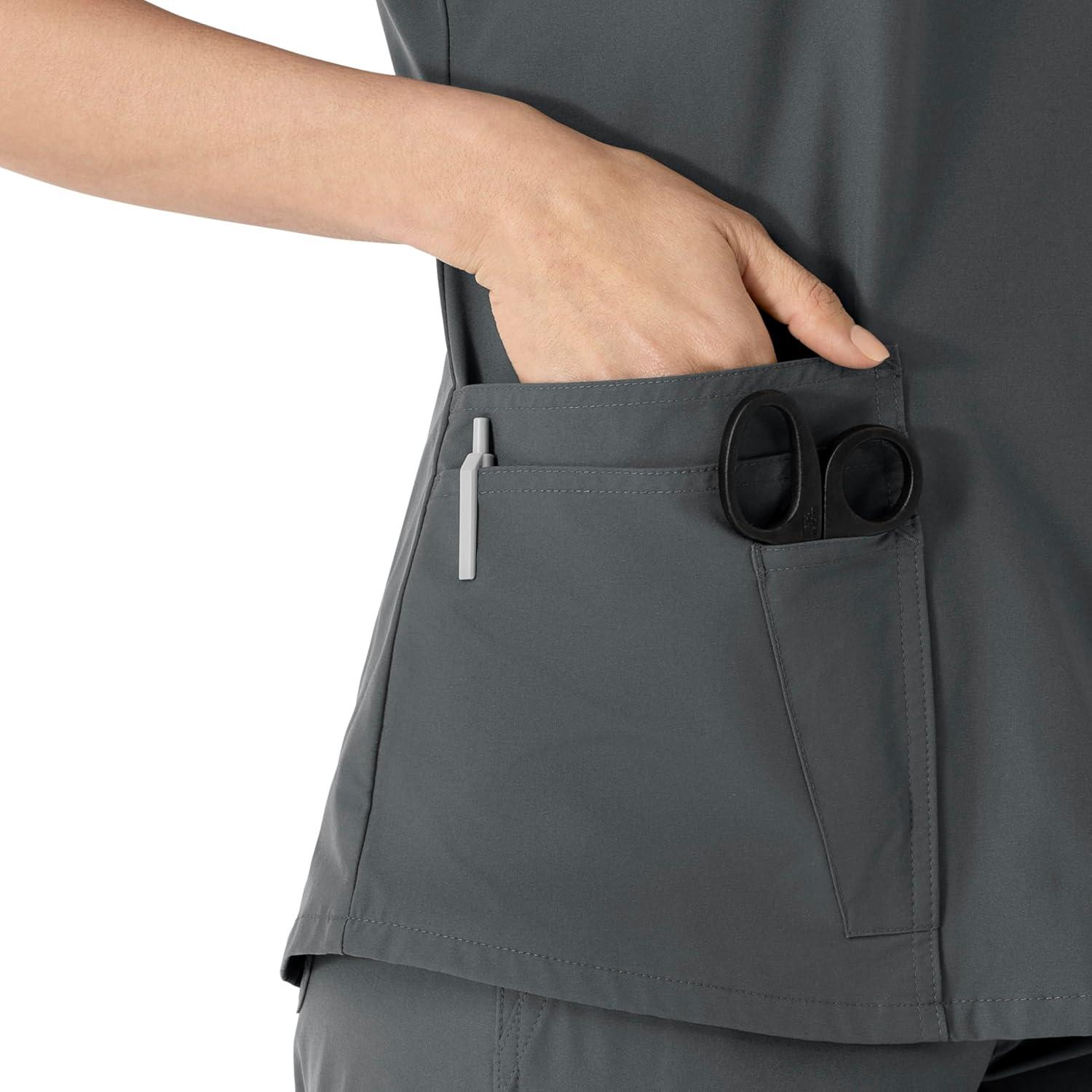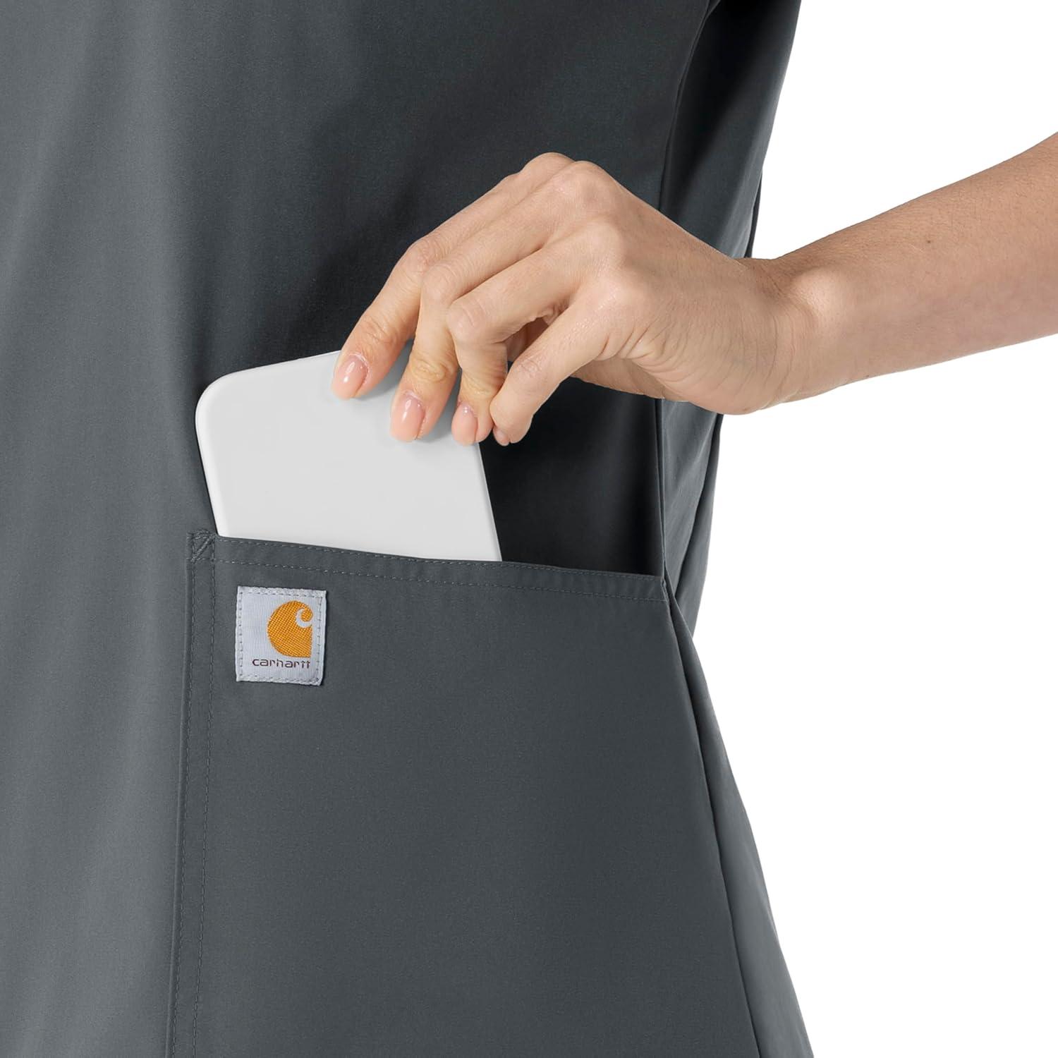 Force technology, along with stain breaking abilities, make our Force Essentials scrub joggers, bottoms, tops, jackets and beanies the perfect choice for fast-paced, long work shifts. This women’s medical work shirt has a modern fit, stretch polyester fabric, curved shirttail hemline, and princess seams at the back that enhance comfort, fit and ease of movement while wearing this medical top. Two large front pockets offer plenty of space for your job essentials. There’s also an internal cell phone pocket at the left and internal scissor pocket at the right of this healthcare shirt. At Carhartt, we make hardworking workwear for hardworking people. We stand behind the quality, craftsmanship and performance of every workwear product we make, because we are worn by the hardest-working people of all — healthcare professionals, veterinarians, construction workers, auto mechanics and other everyday heroes.