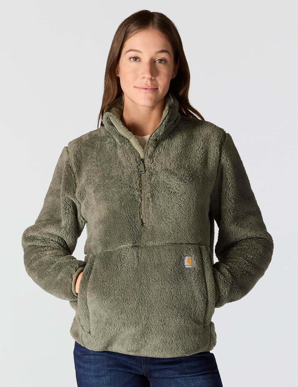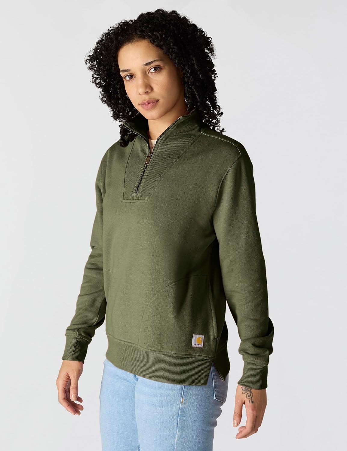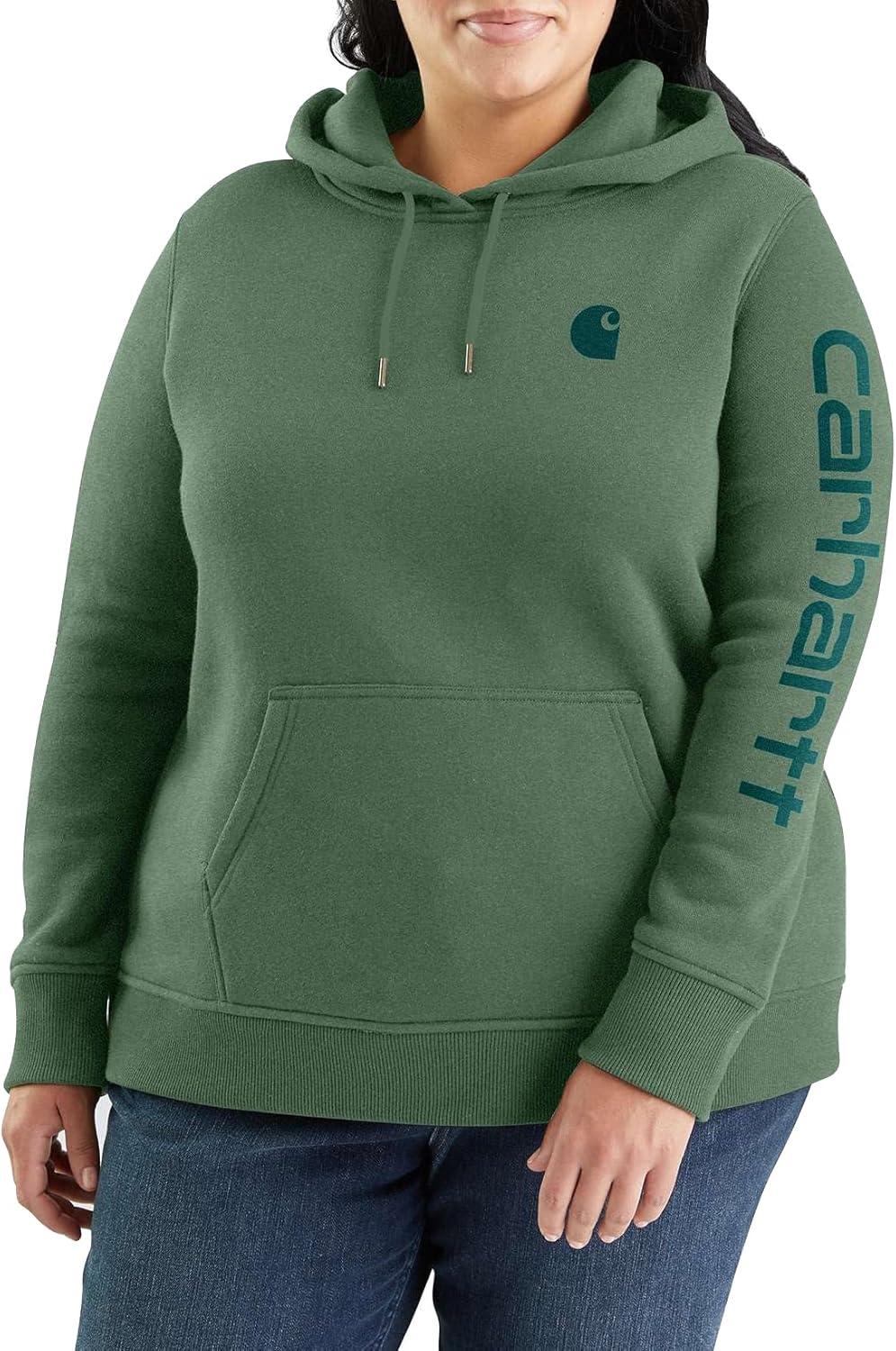 Carhartt womens Force Oversized-fit Fleece Hooded Sweatshirt(Dusty Olive Heather)