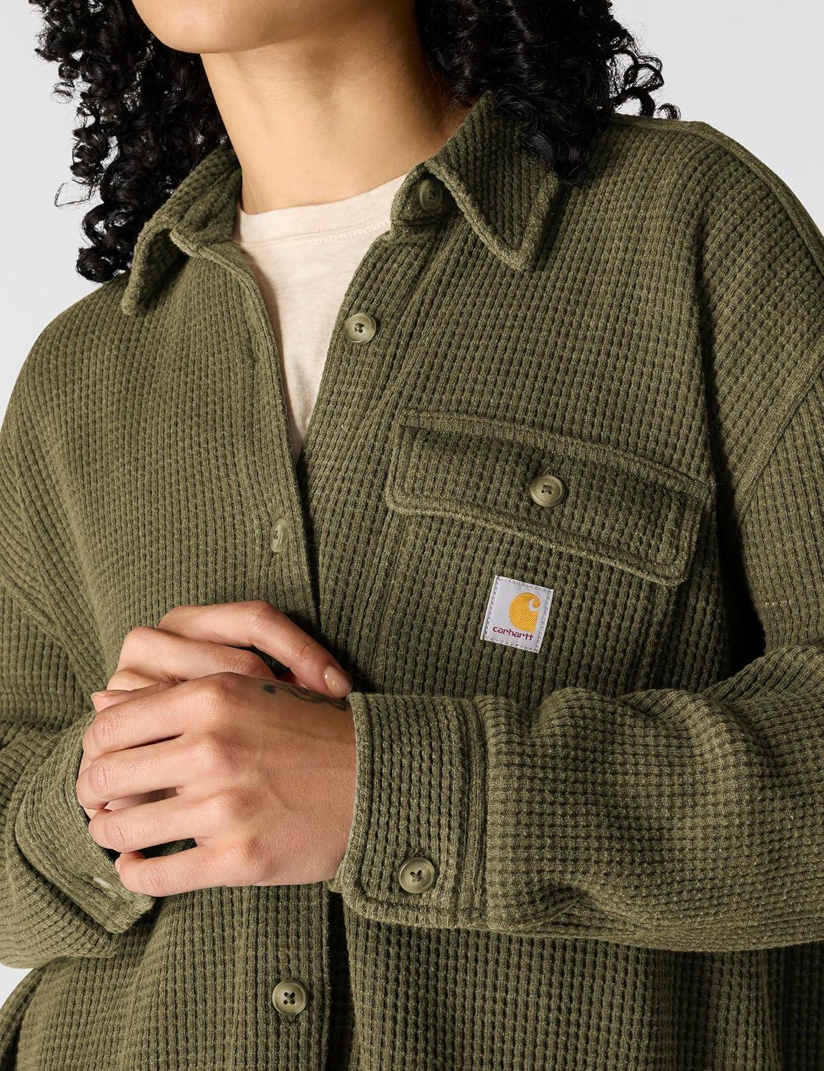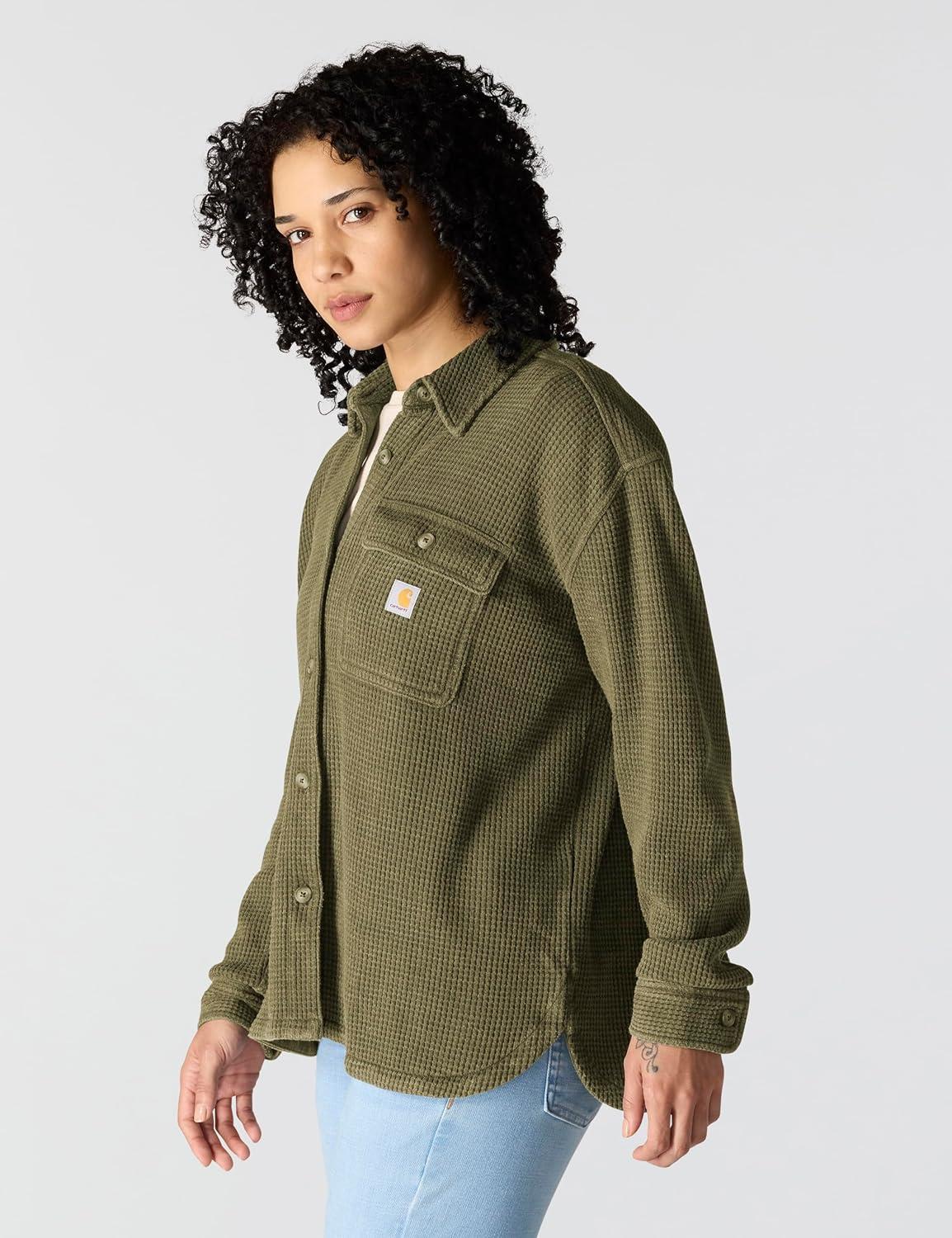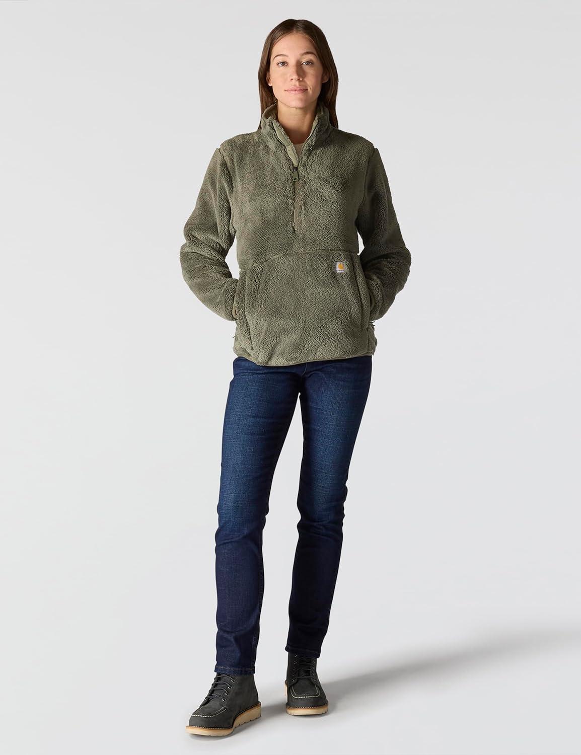 Carhartt womens Force Oversized-fit Fleece Hooded Sweatshirt(Dusty Olive Heather)