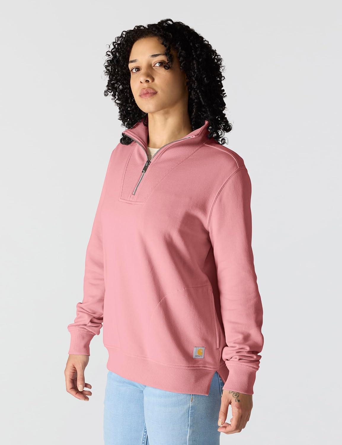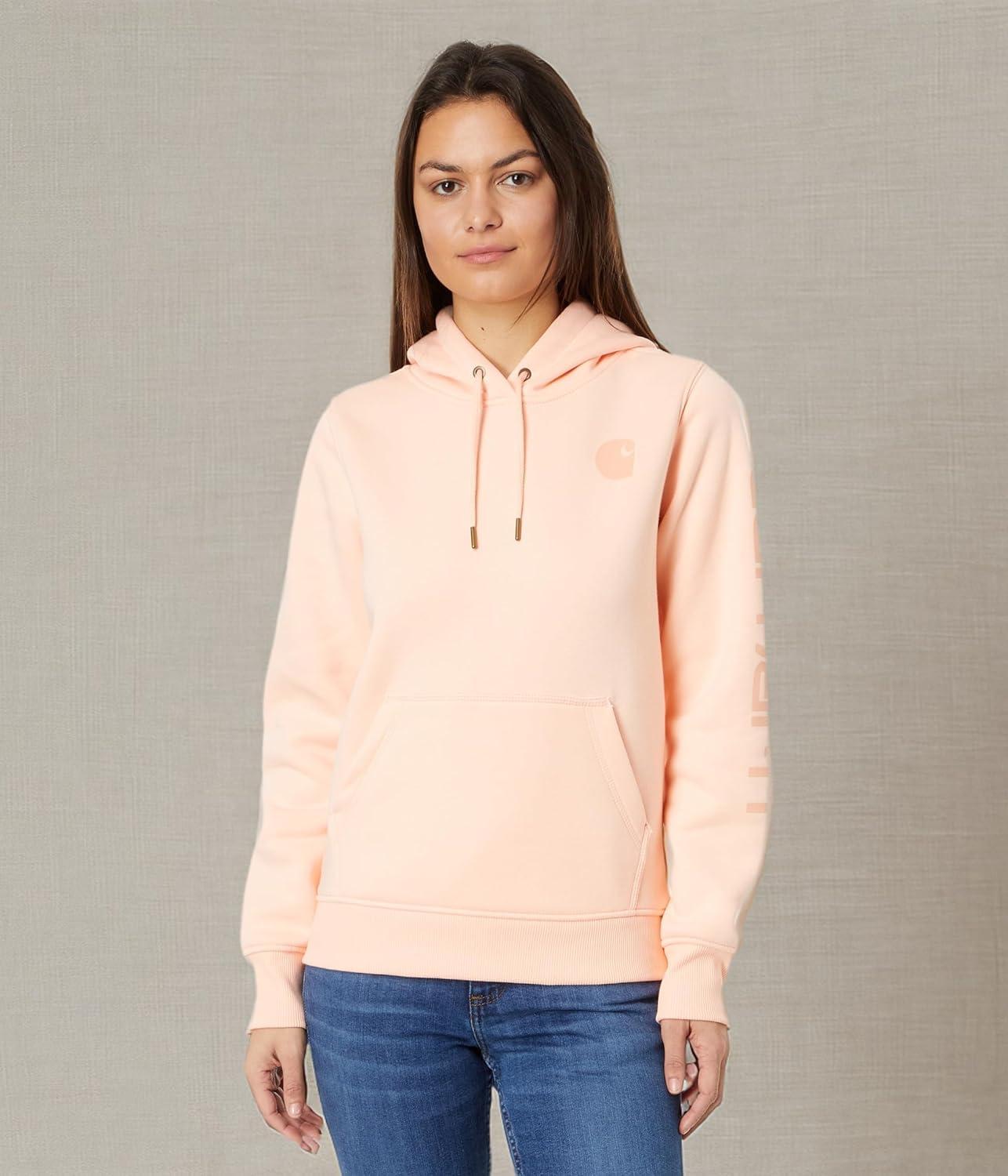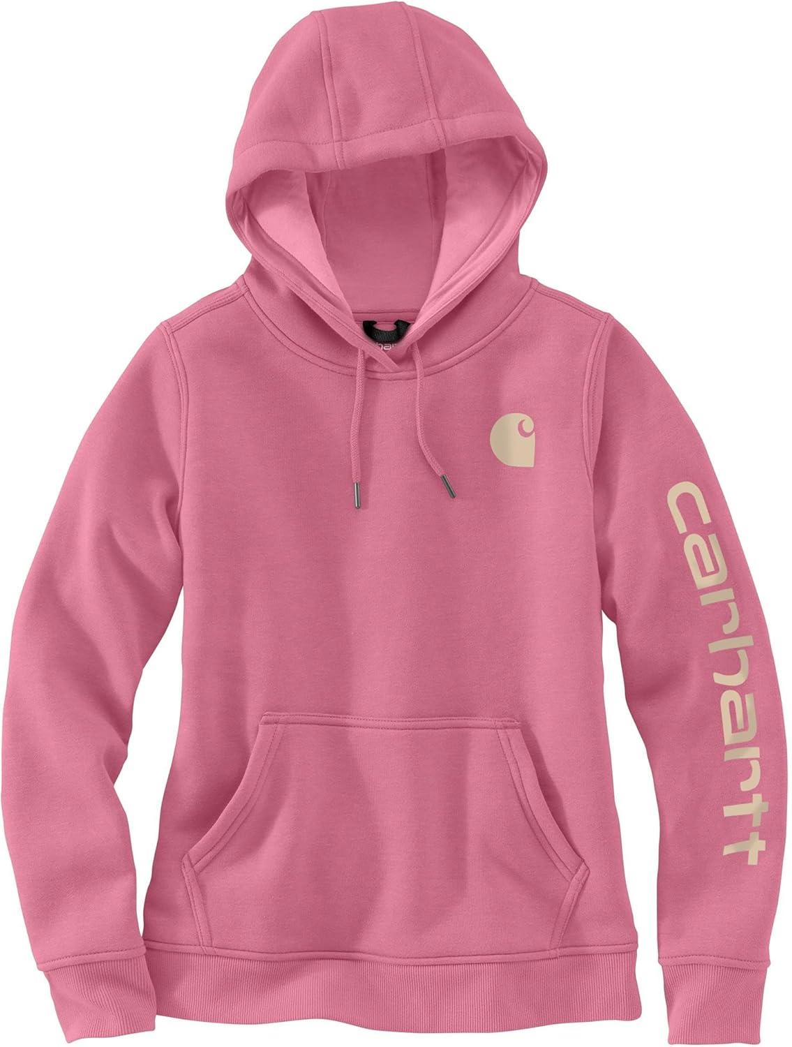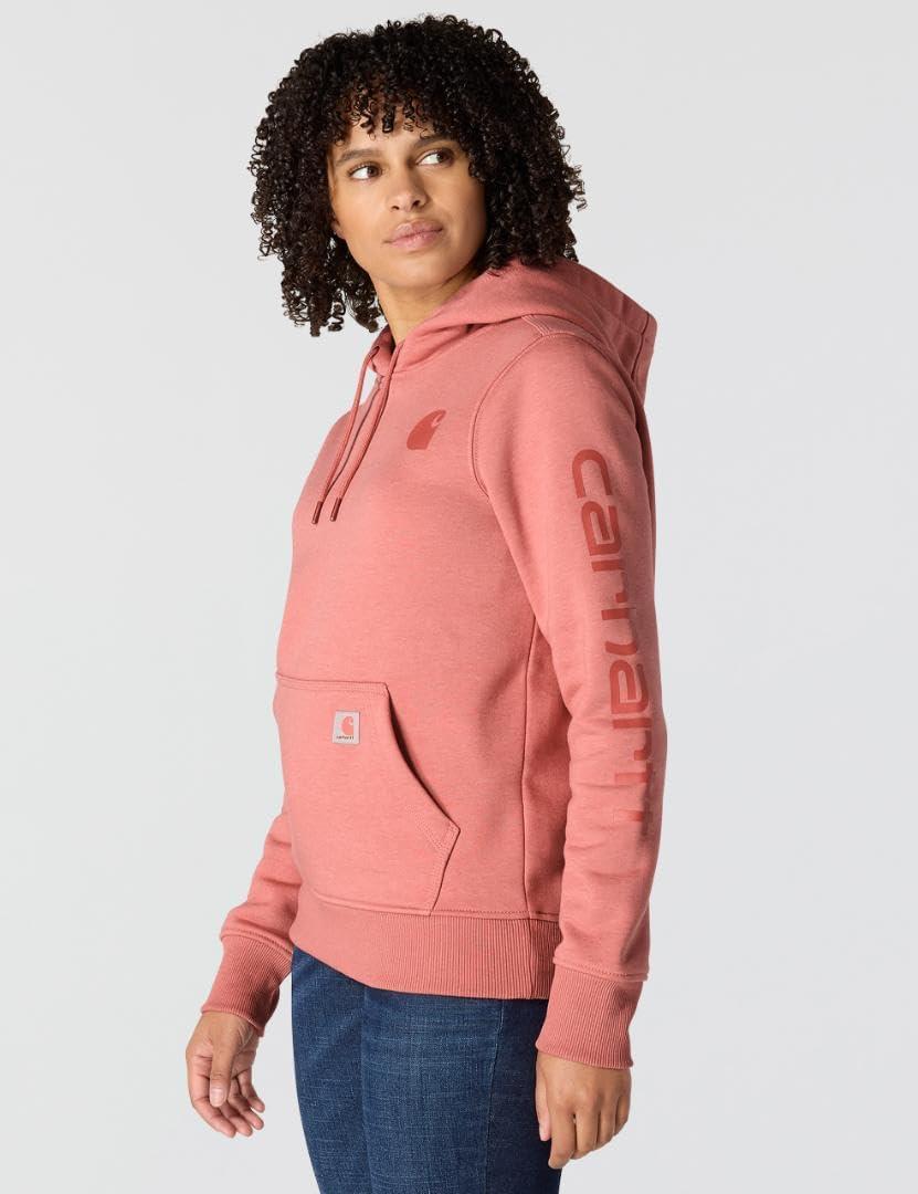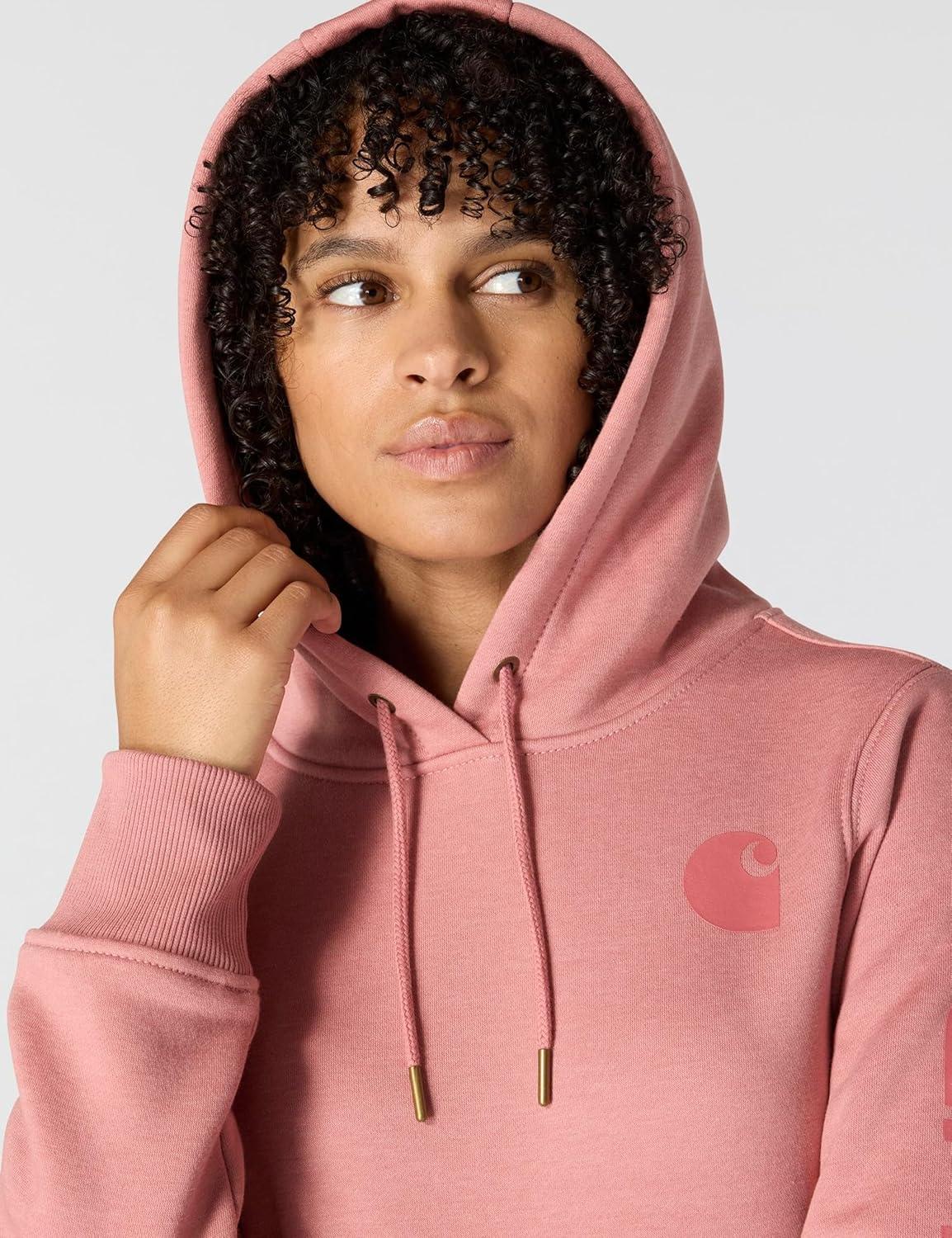 Carhartt womens Relaxed Fit Midweight Garment Dye French Terry Hooded Sweatshirt(Rose Tint)
