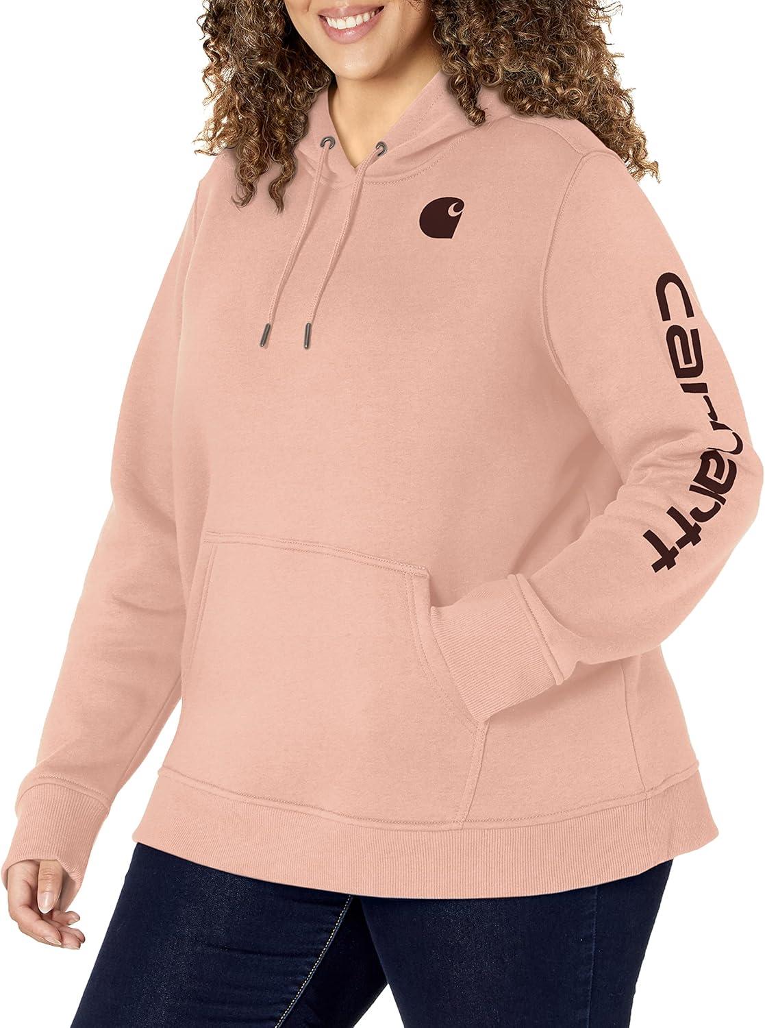 Carhartt womens Force Oversized-fit Fleece Hooded Sweatshirt(Rosewater Heather)