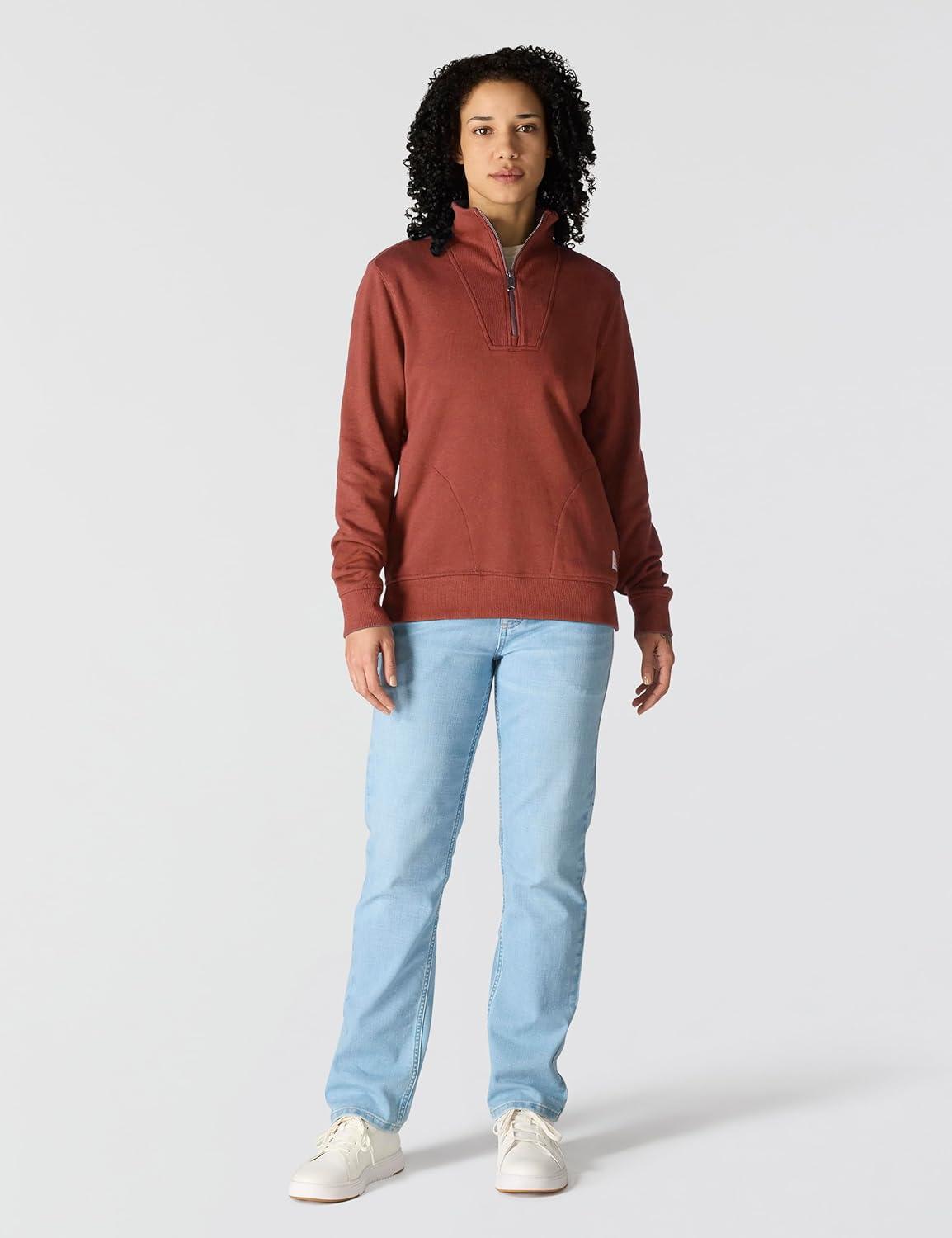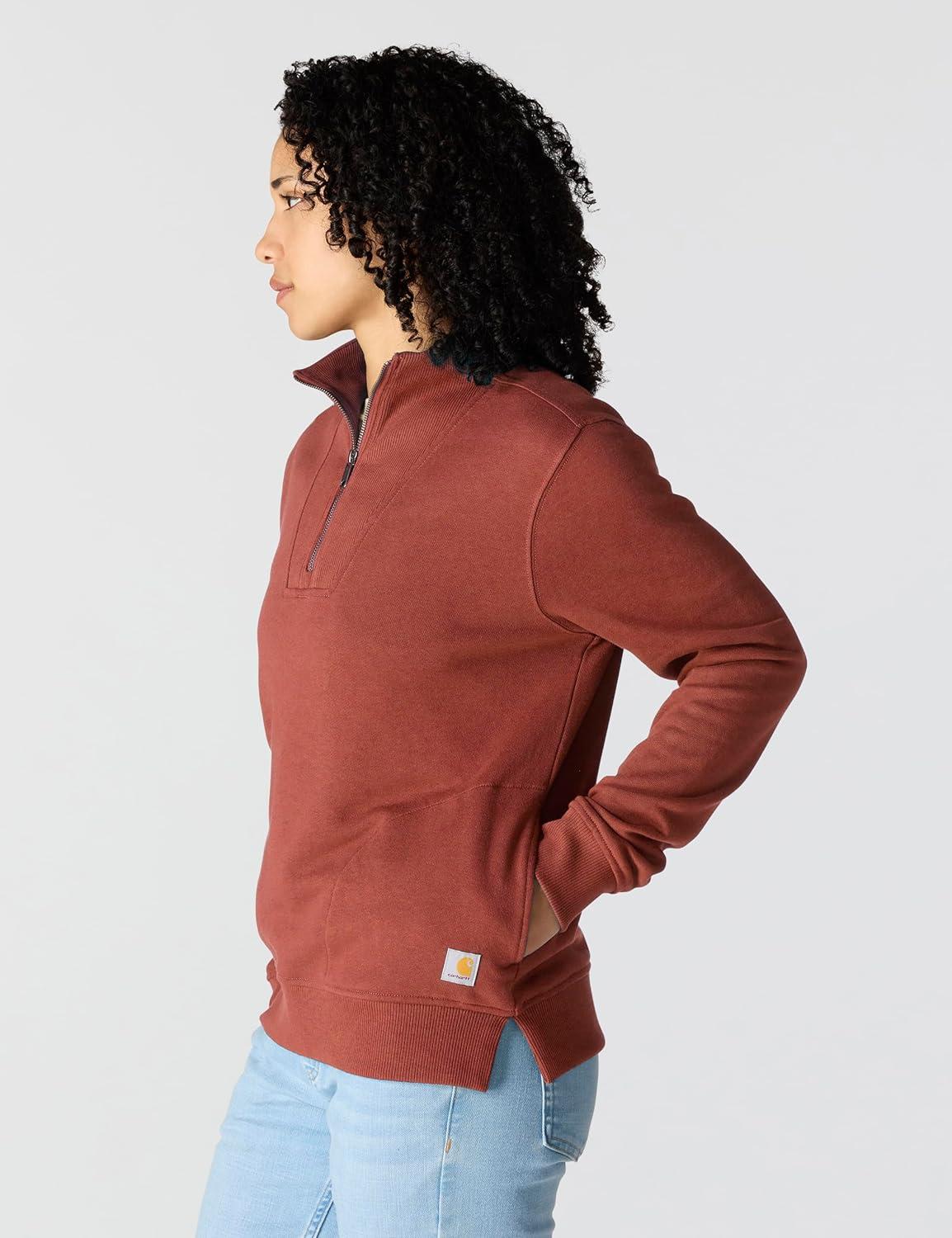 Carhartt womens Relaxed Fit Midweight Garment Dye French Terry Hooded Sweatshirt(Dark Spice Red)