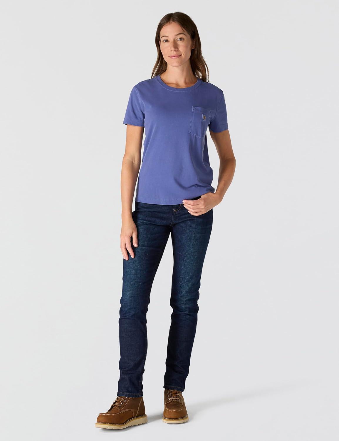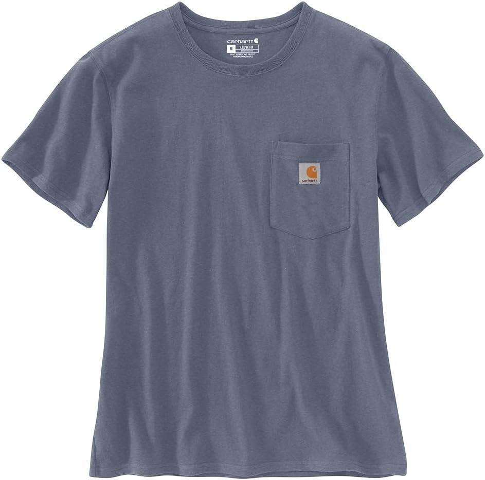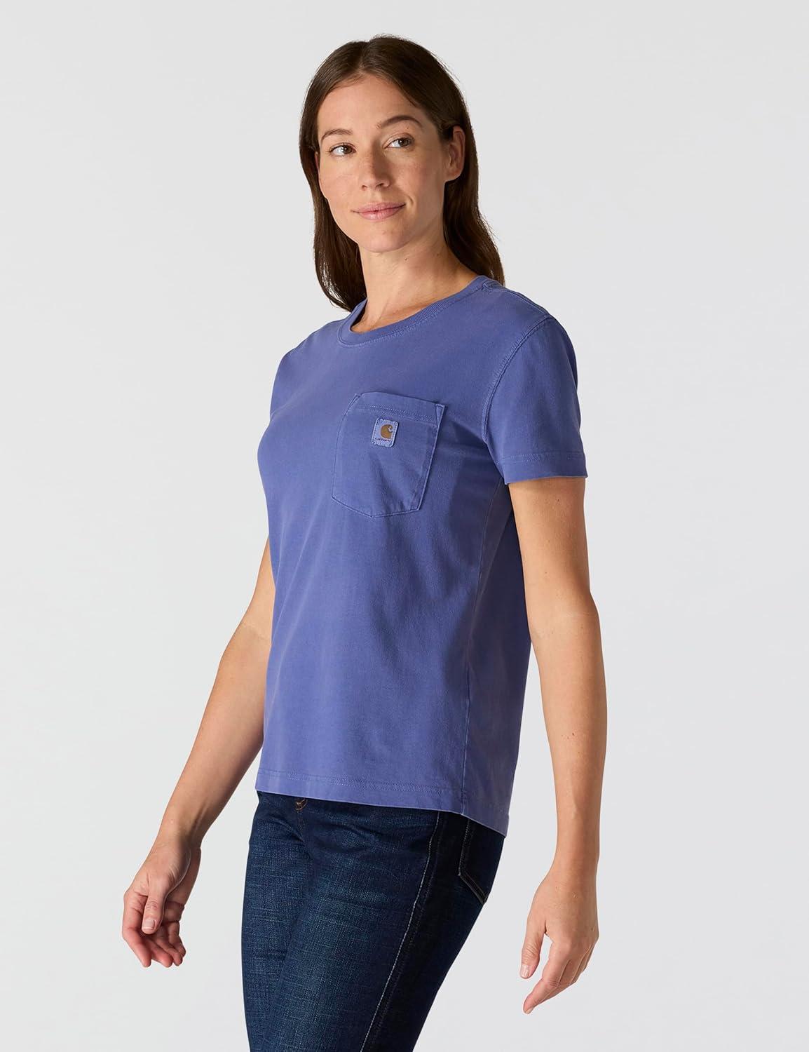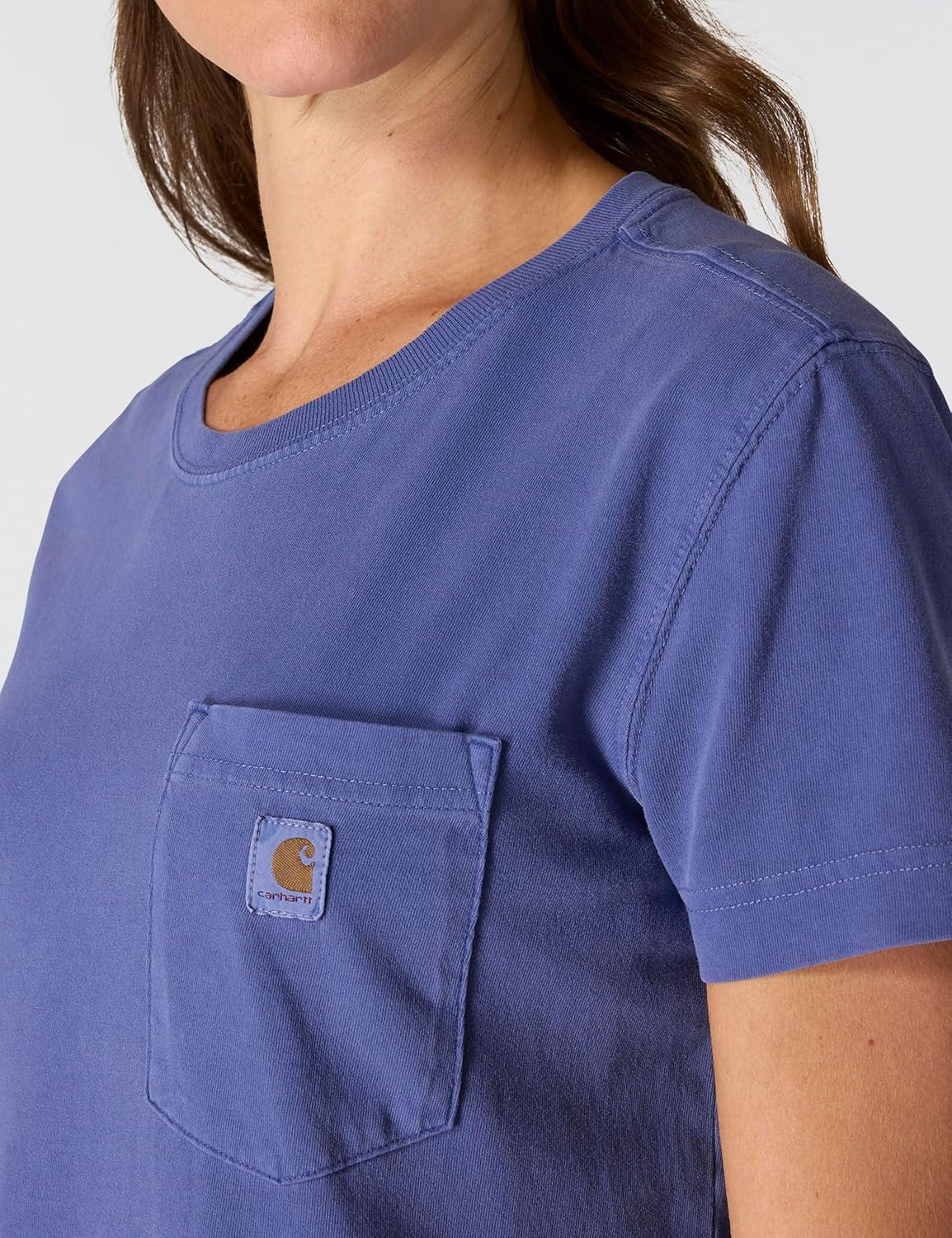 Carhartt Womens Relaxed Fit Lightweight Short Sleeve Garment Dye Pocket T-Shirt(Lunar Blue)