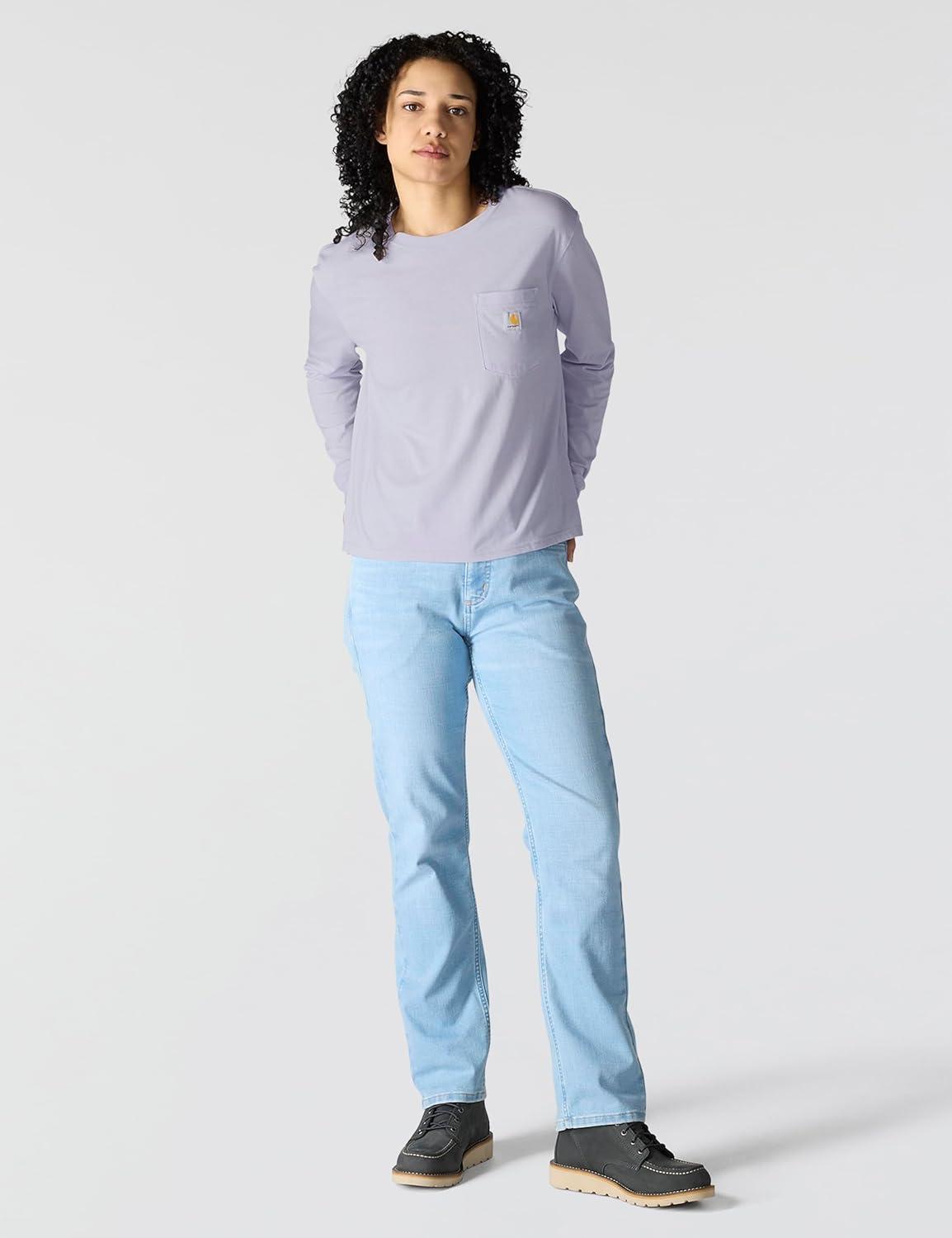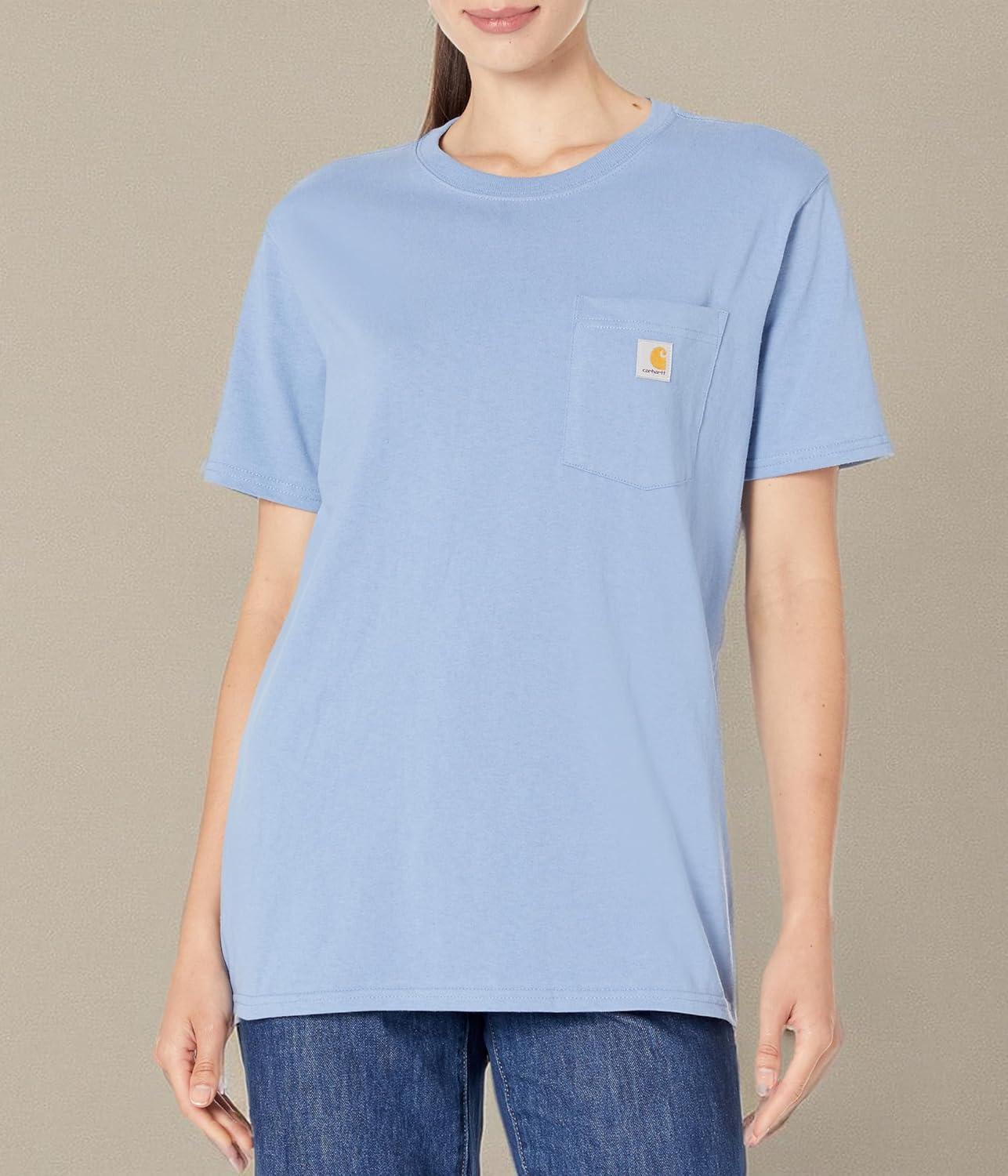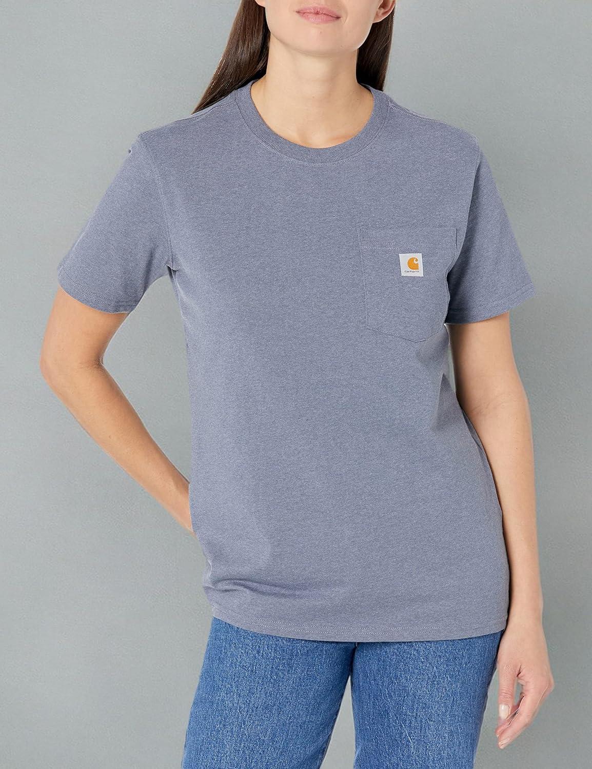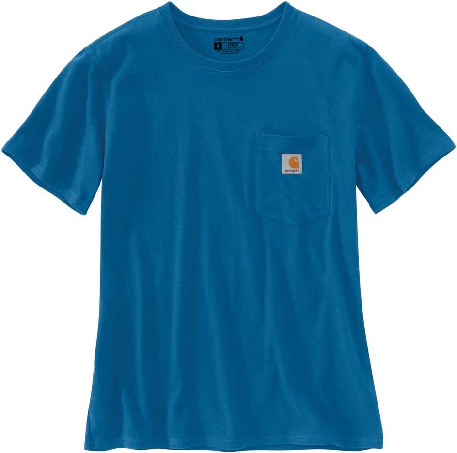 Carhartt Womens Relaxed Fit Lightweight Short Sleeve Garment Dye Pocket T-Shirt(Lunar Blue)