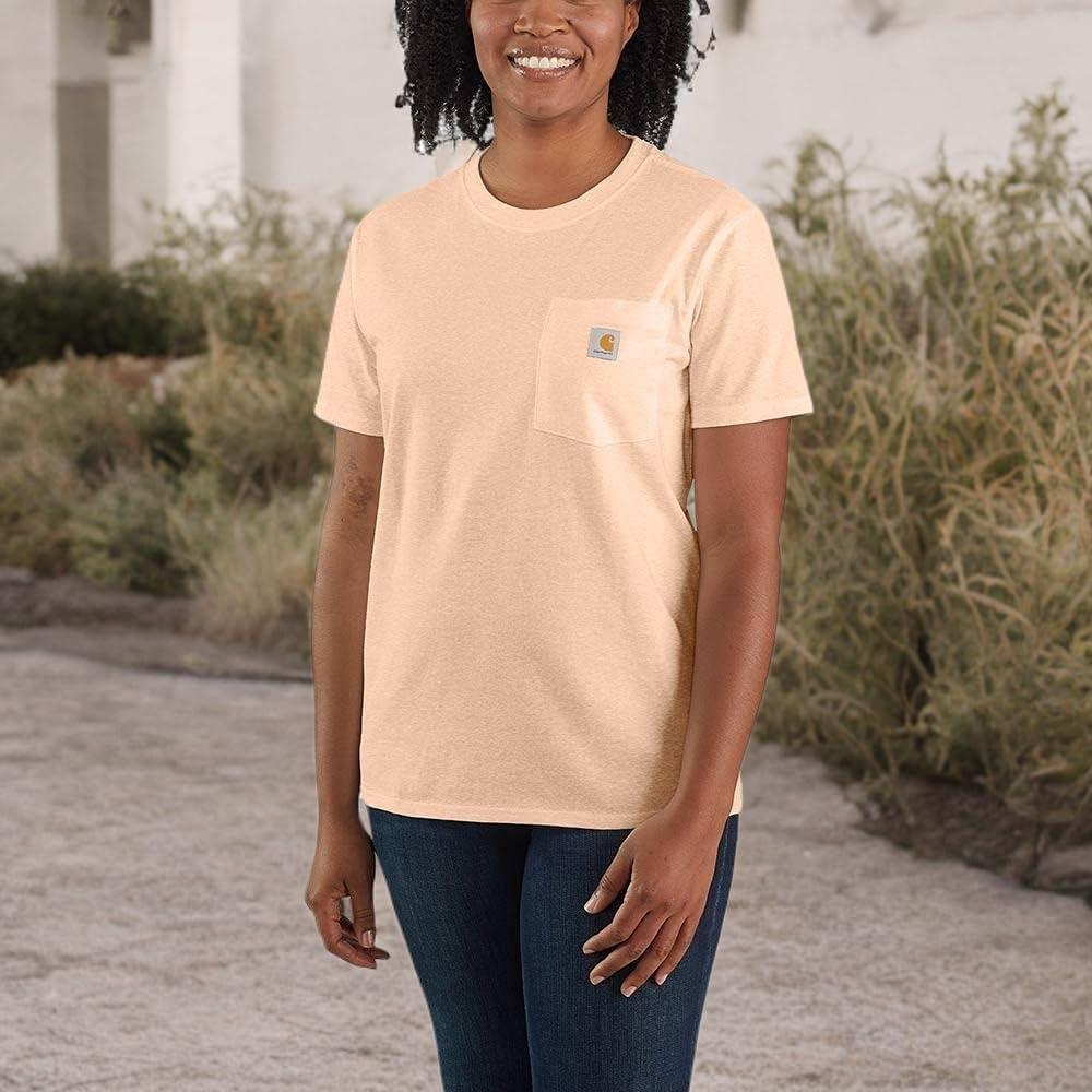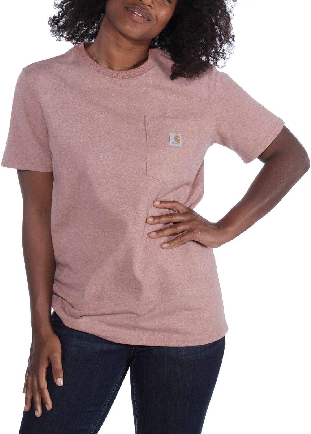 Carhartt Women’s Loose Fit Heavyweight Short-Sleeve Pocket T-Shirt(Rose Tint Heather)