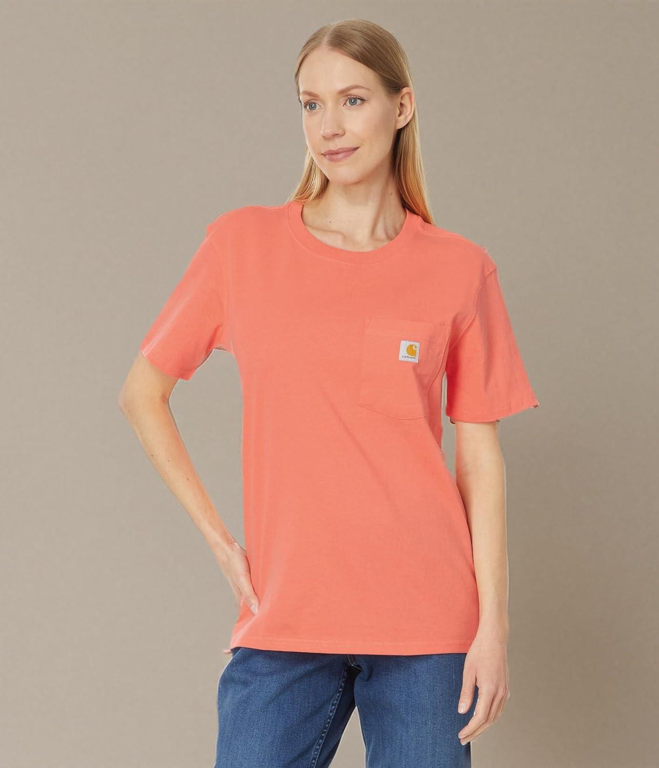Carhartt Women’s Loose Fit Heavyweight Short-Sleeve Pocket T-Shirt(Cherry Bloom)