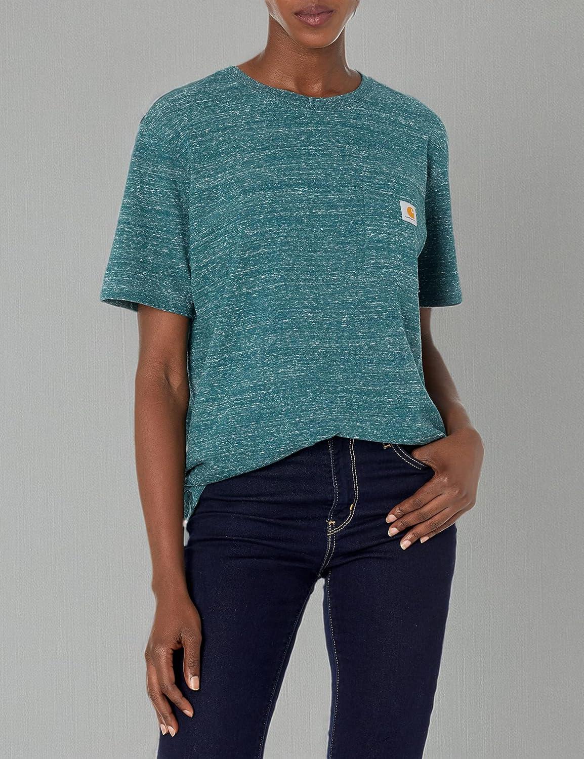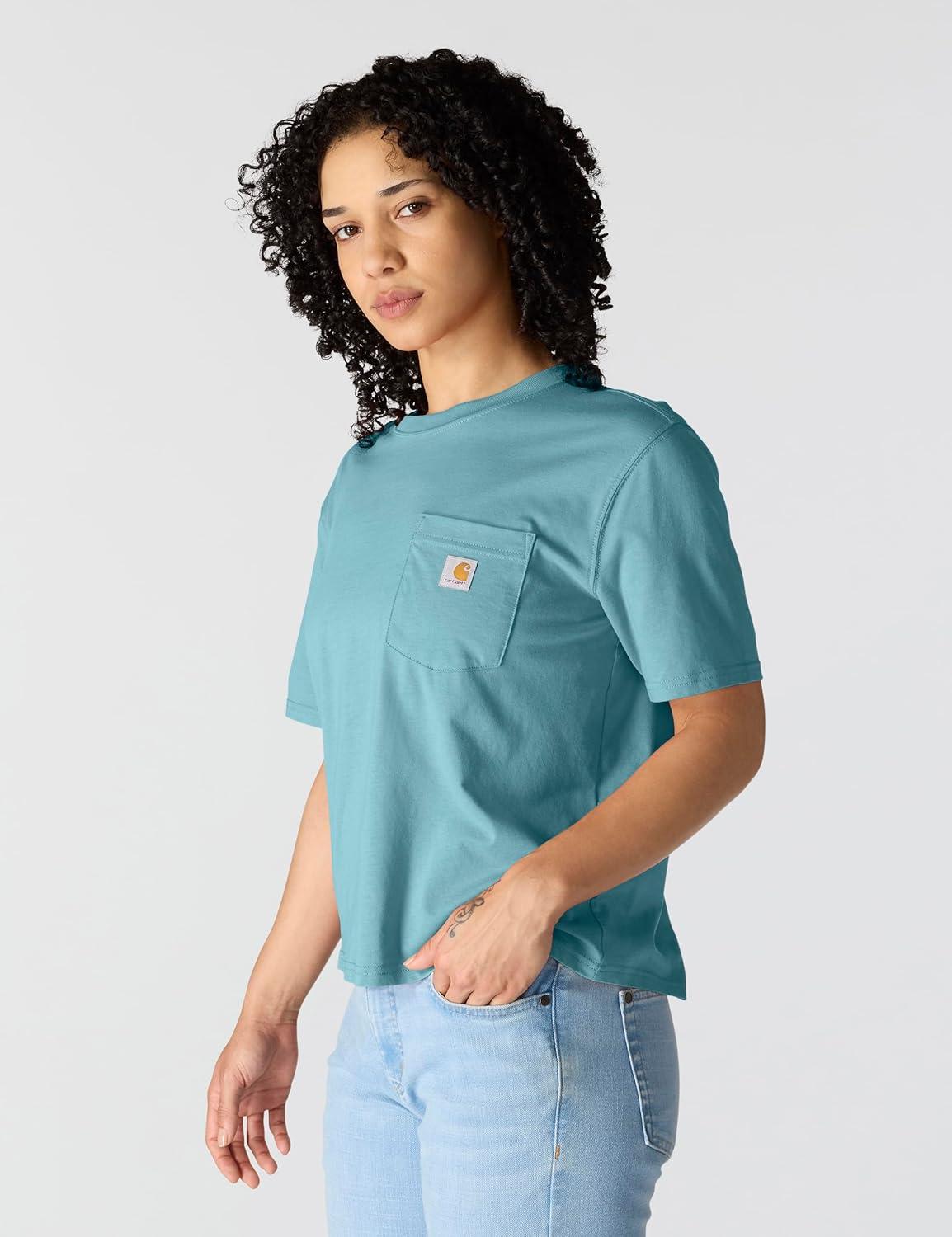 Carhartt Women’s Loose Fit Heavyweight Short-Sleeve Pocket T-Shirt(Smoked Teal)