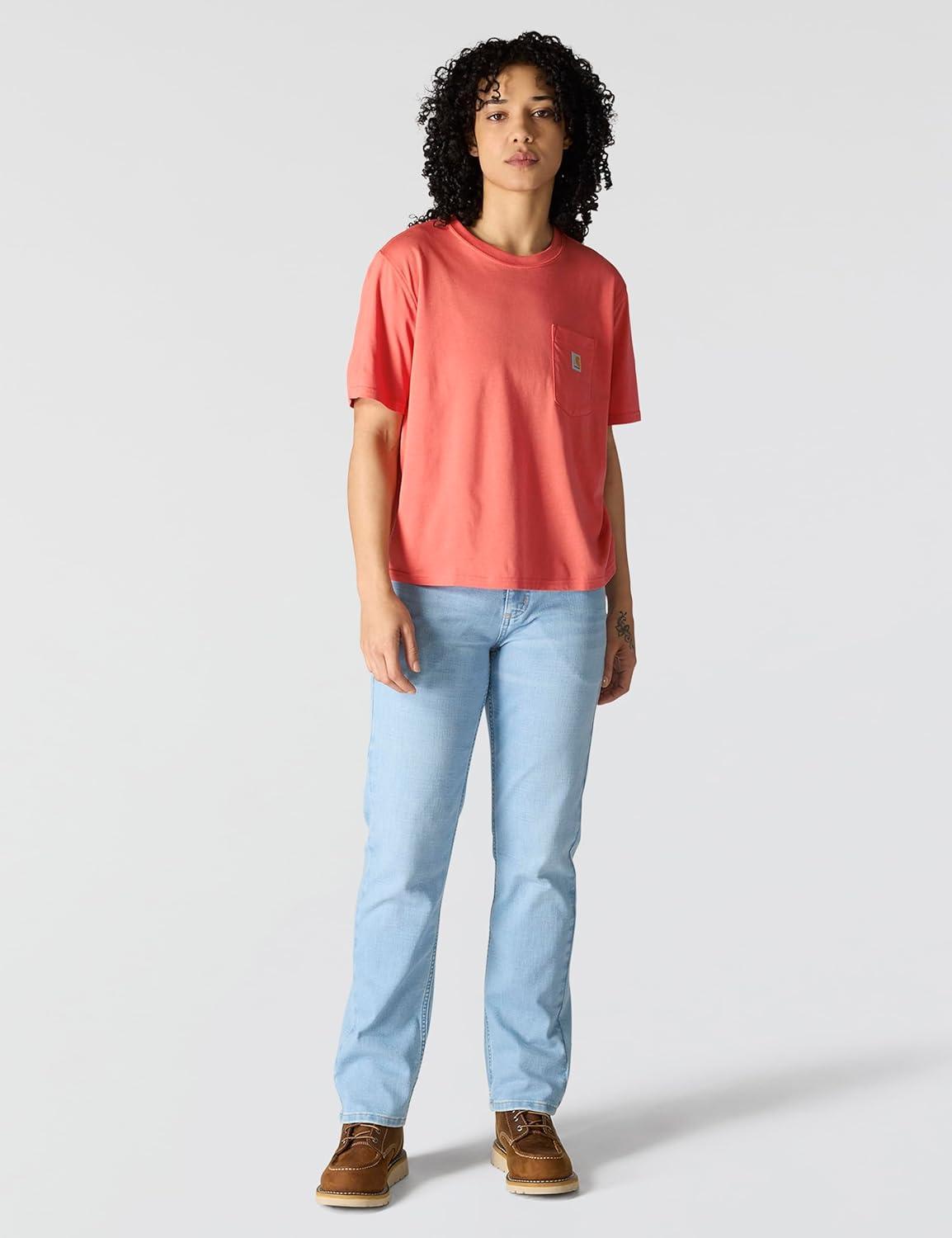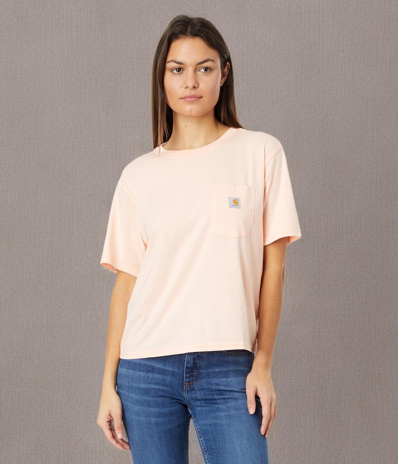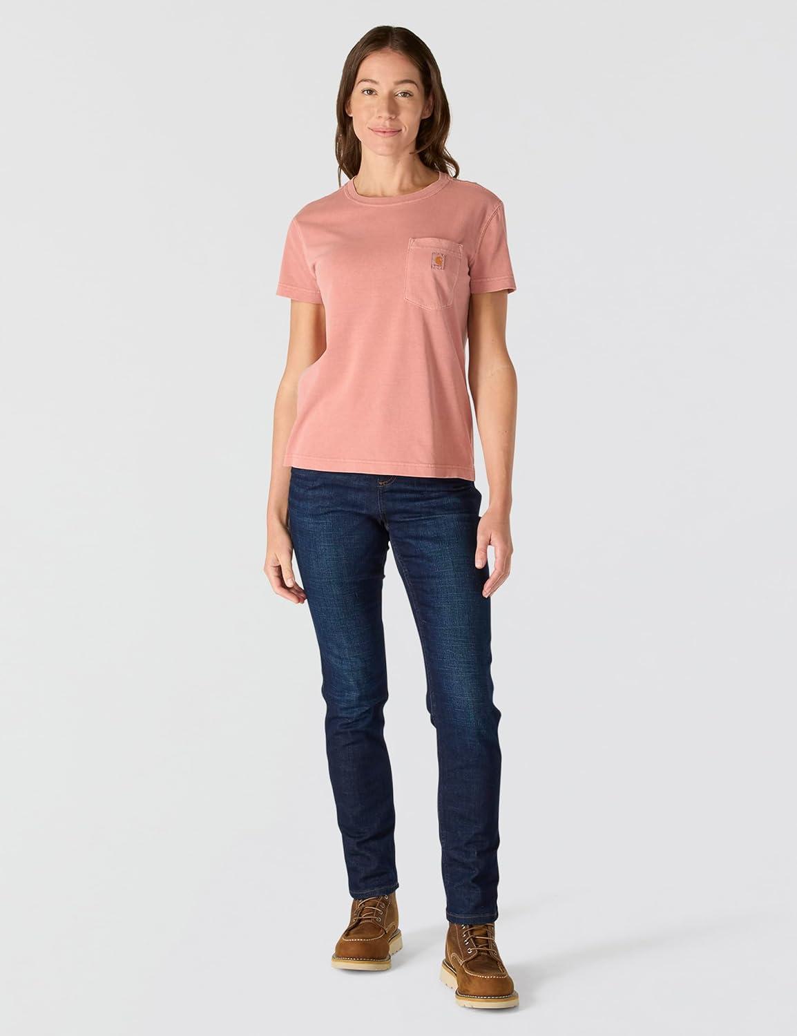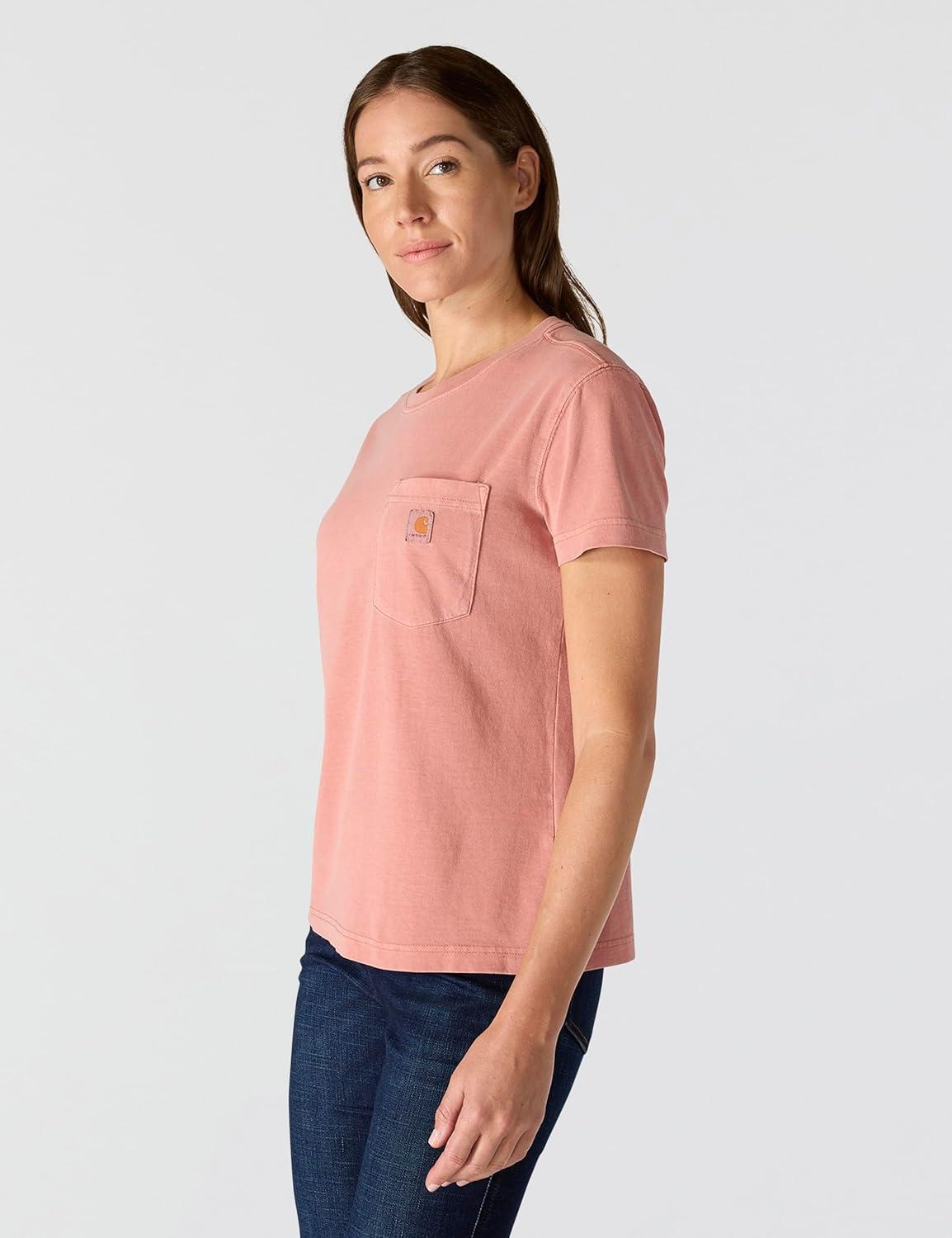 Carhartt Womens Relaxed Fit Lightweight Short Sleeve Garment Dye Pocket T-Shirt(Rose Tint)