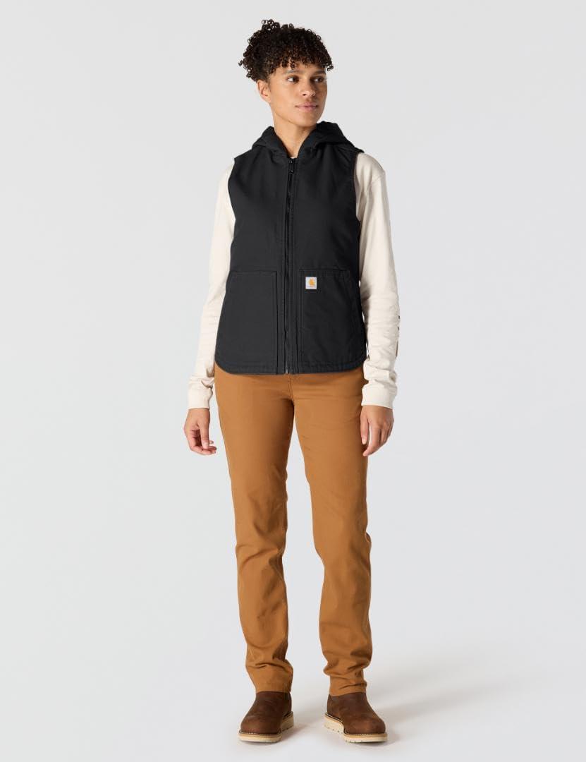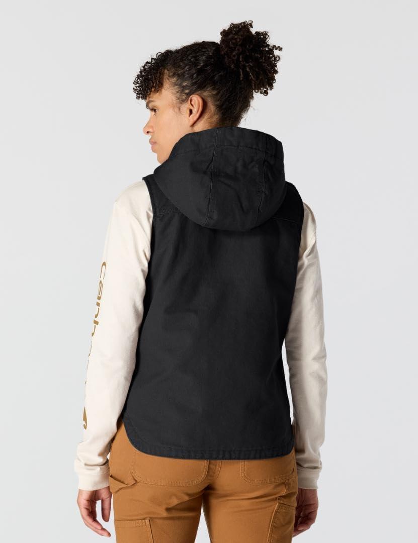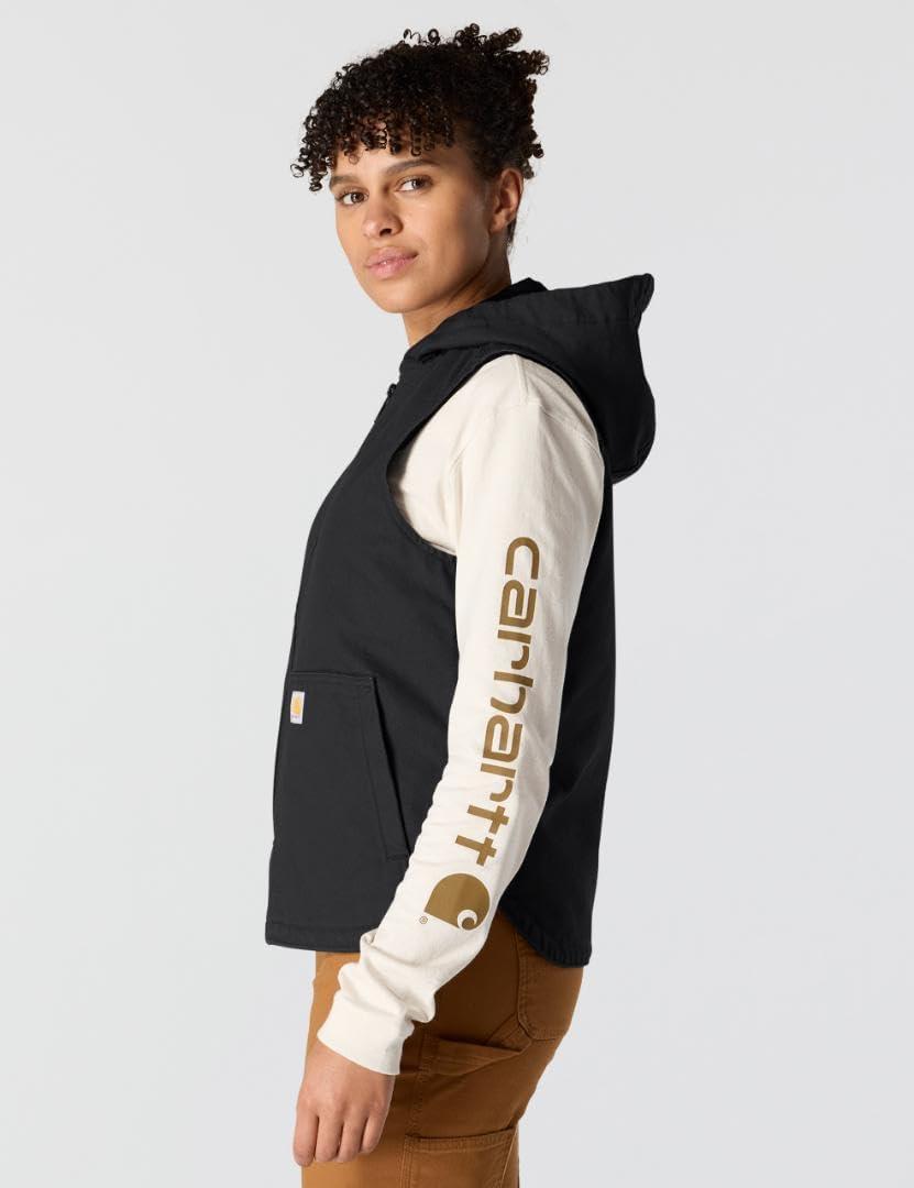 Carhartt Womens Relaxed Fit Washed Duck Insulated Hooded Vest(Black)