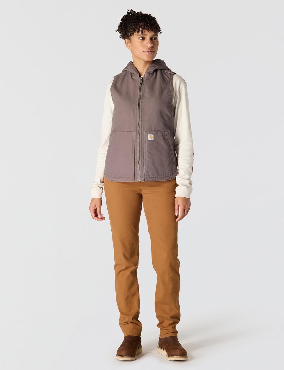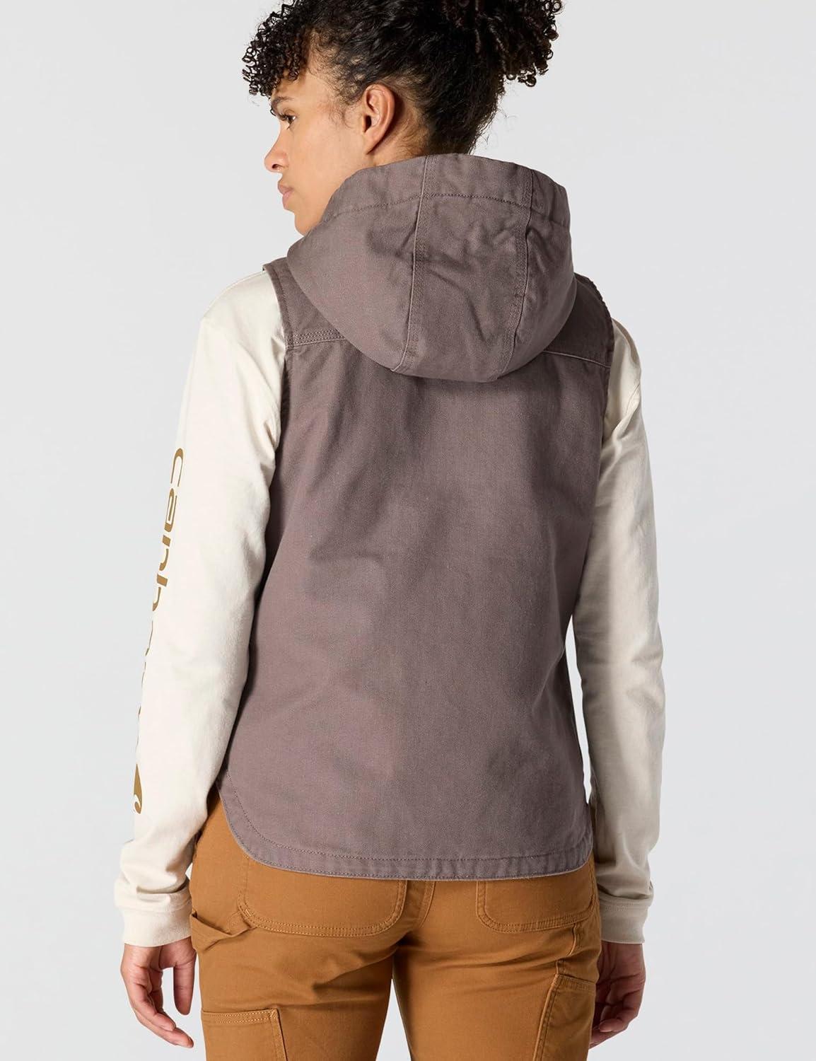 Carhartt Womens Relaxed Fit Washed Duck Insulated Hooded Vest(Taupe Gray)