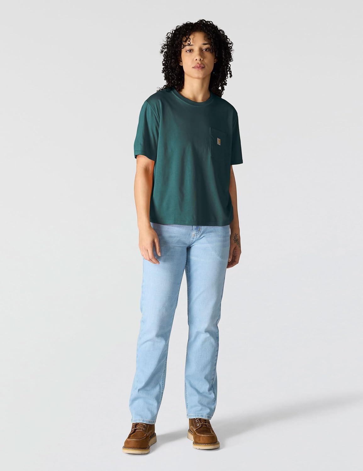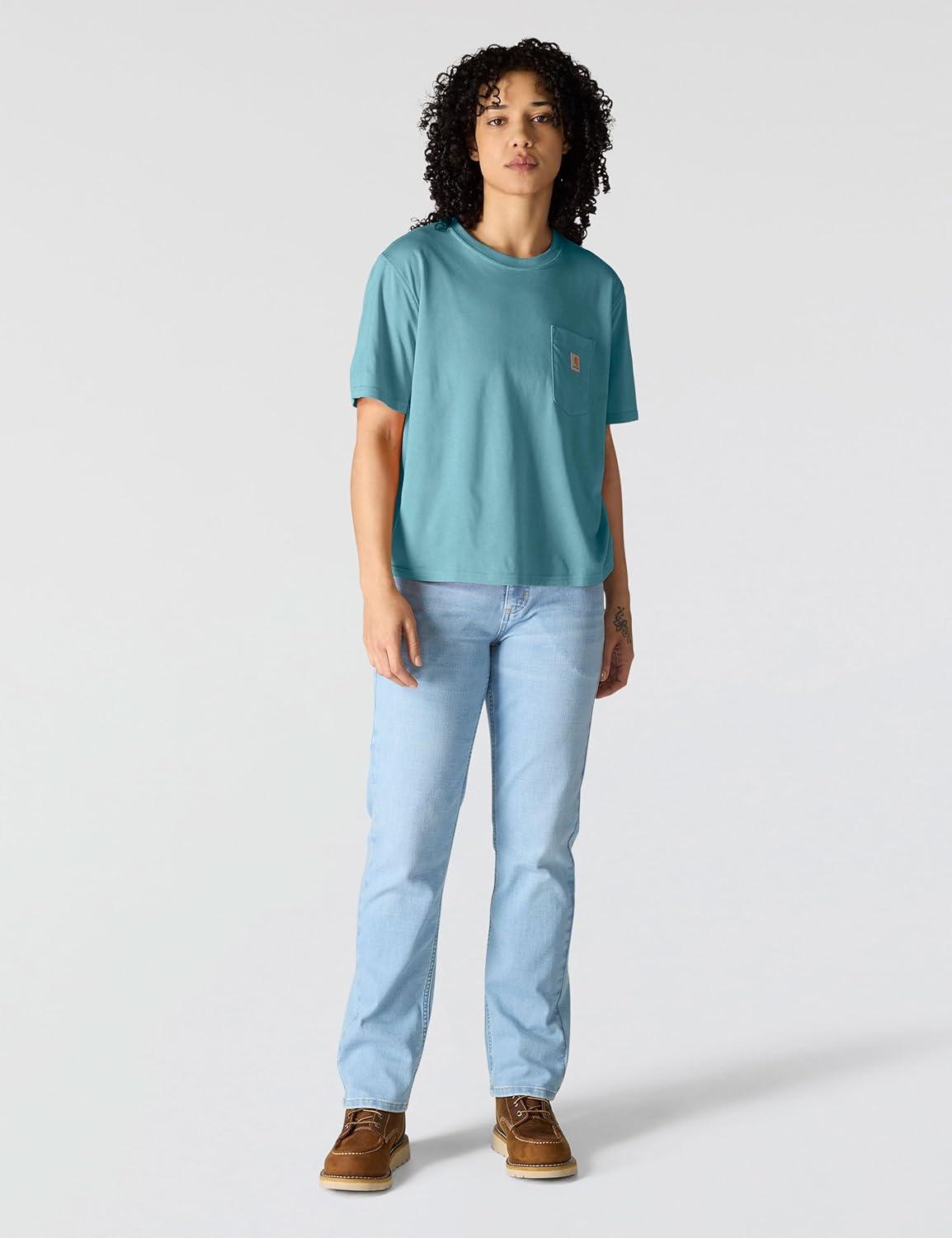 Carhartt Womens Relaxed Fit Lightweight Short Sleeve Garment Dye Pocket T-Shirt(Seabrook)