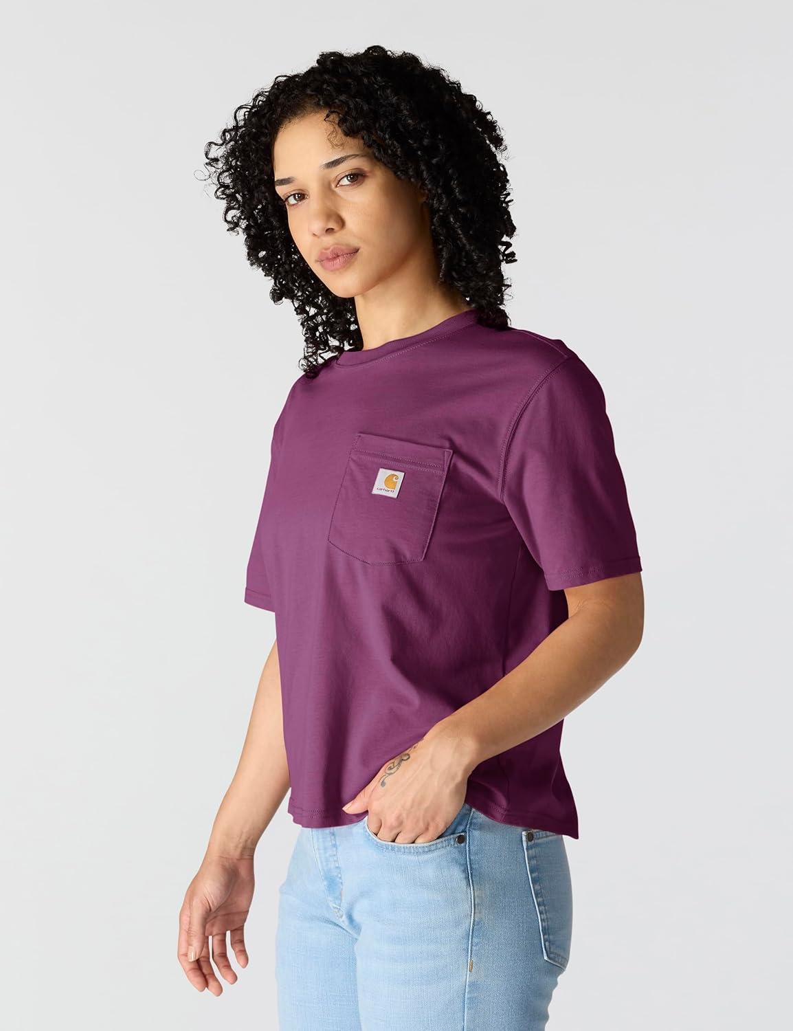 Carhartt Women’s Loose Fit Heavyweight Short-Sleeve Pocket T-Shirt(Blackberry Heather)