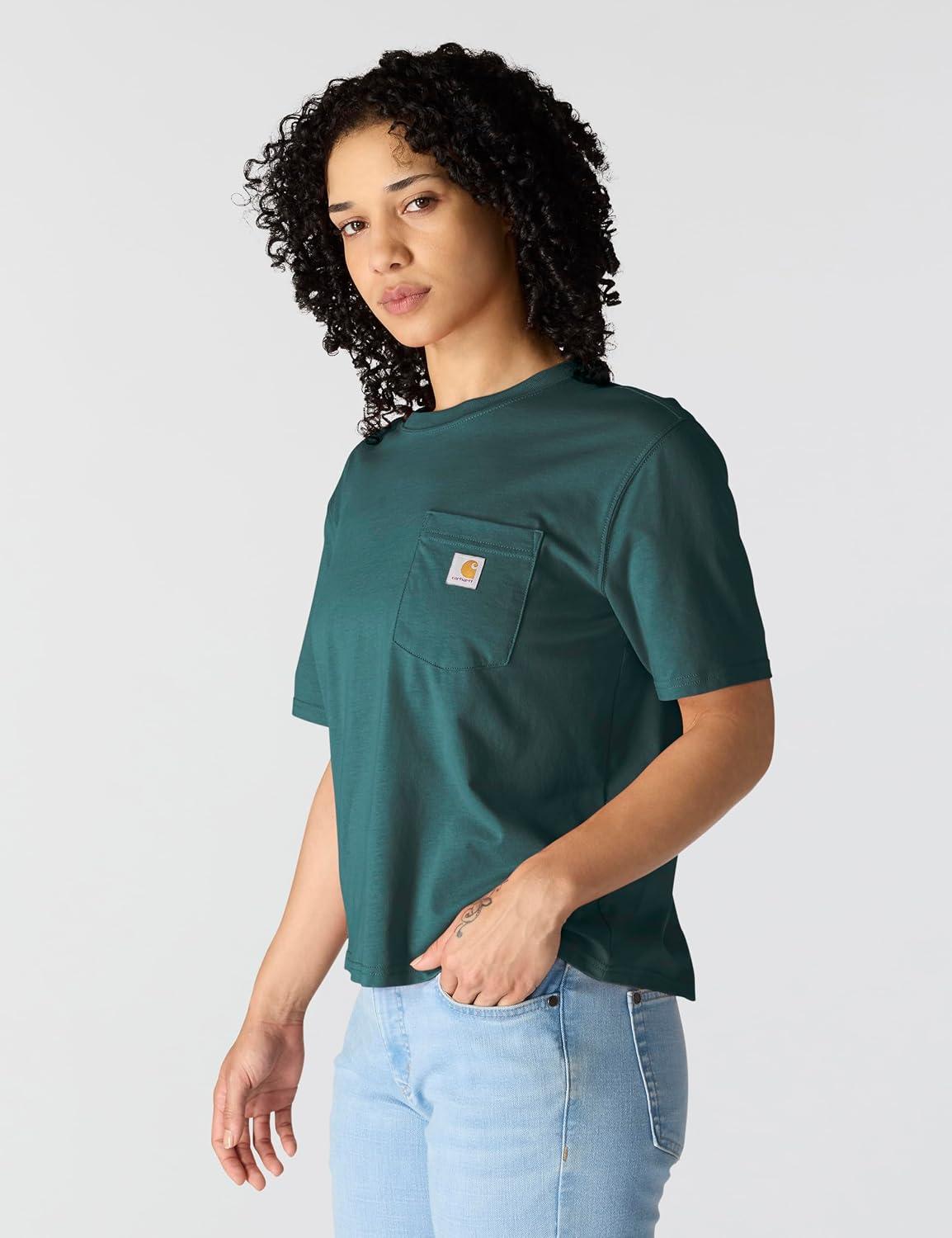 Carhartt Women’s Loose Fit Heavyweight Short-Sleeve Pocket T-Shirt(Greenstone)