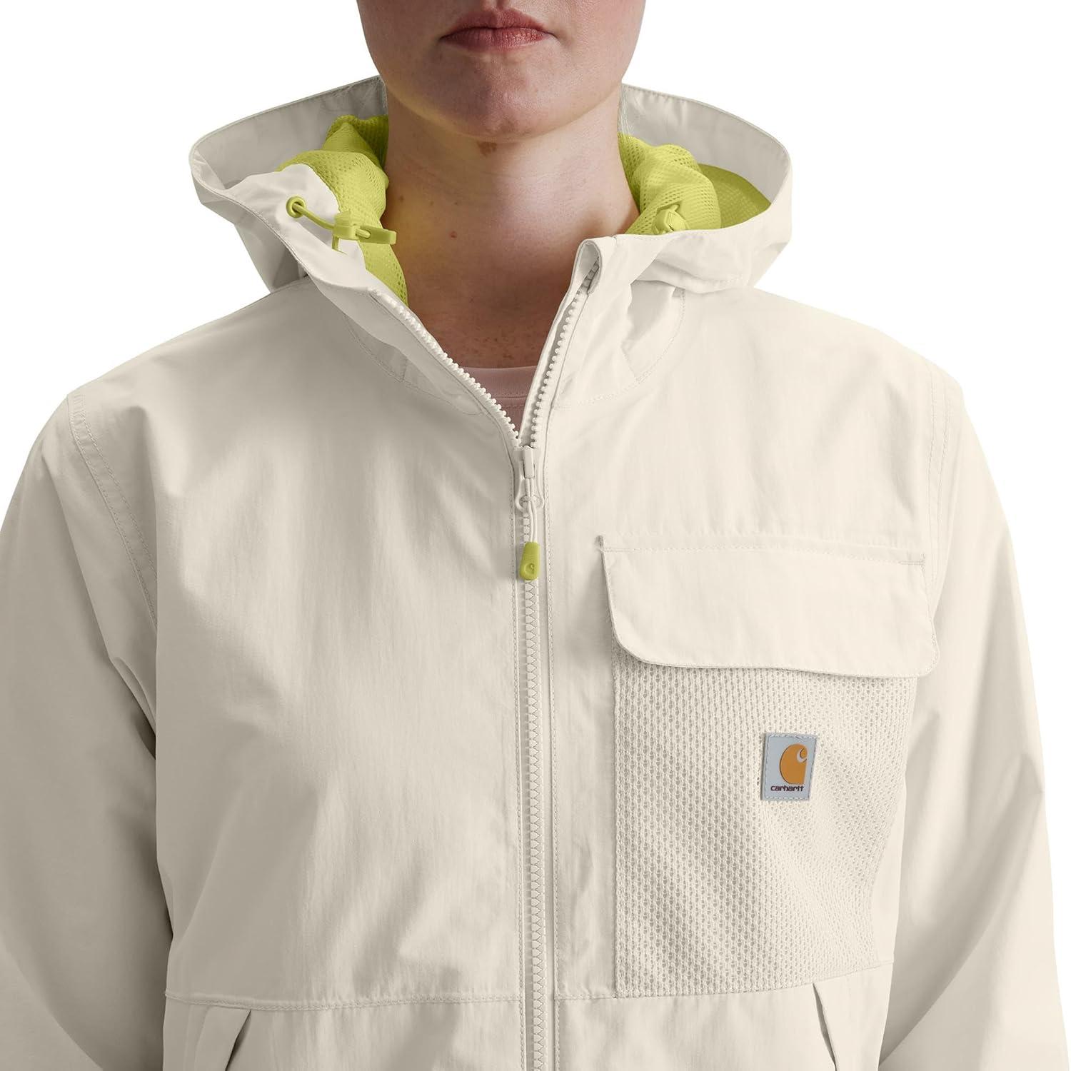 Carhartt womens Storm Defender Loose Fit Lightweight Hooded Packable Jacket(Chalk)
