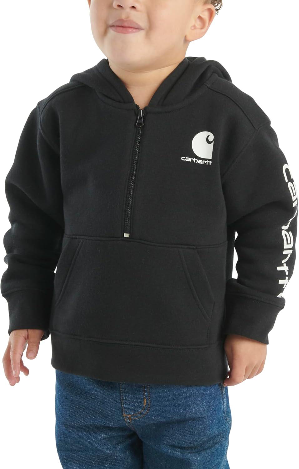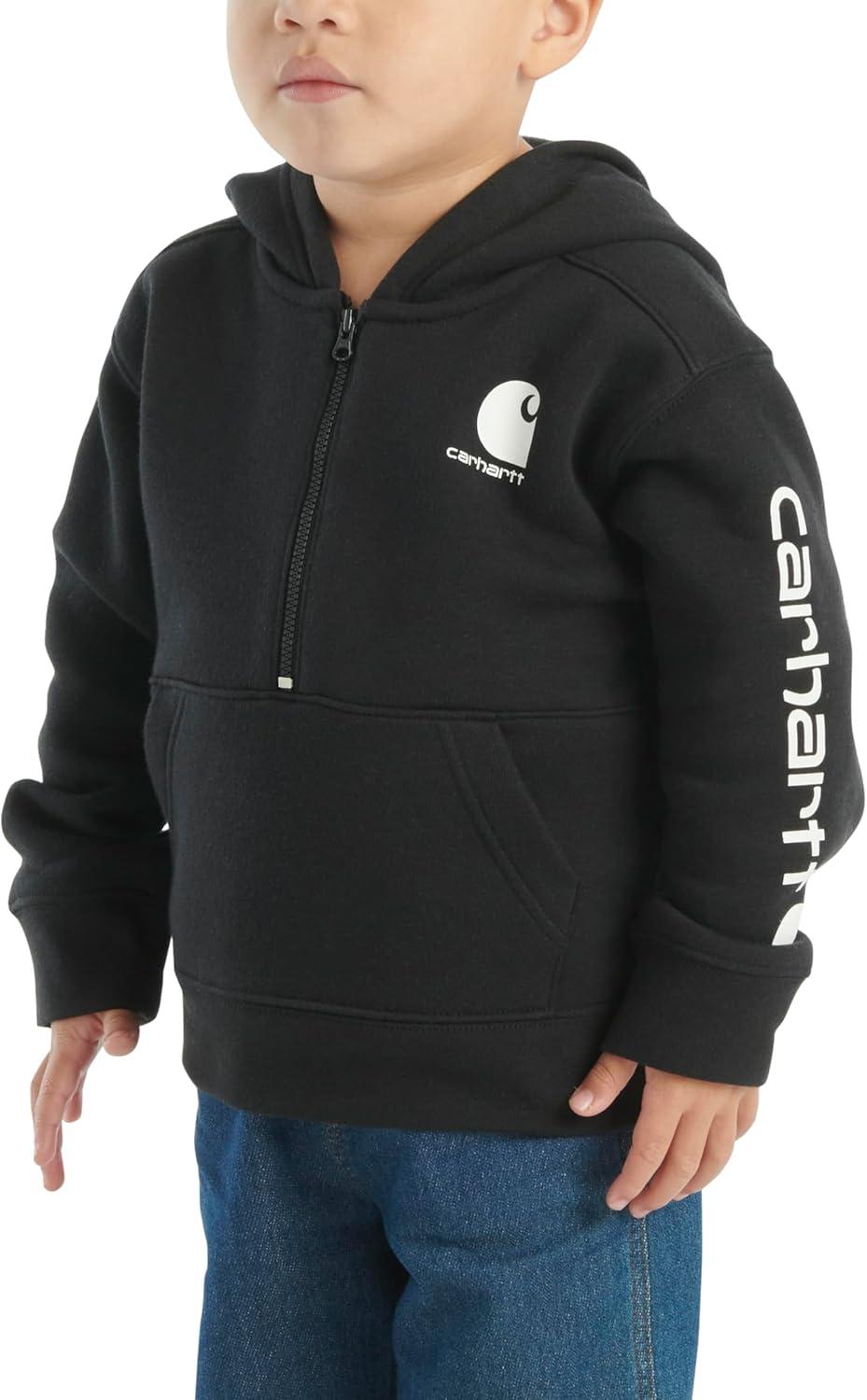Carhartt Baby & Toddler Boys’ Half-Zip Hooded Pullover Sweatshirt(Caviar Black)